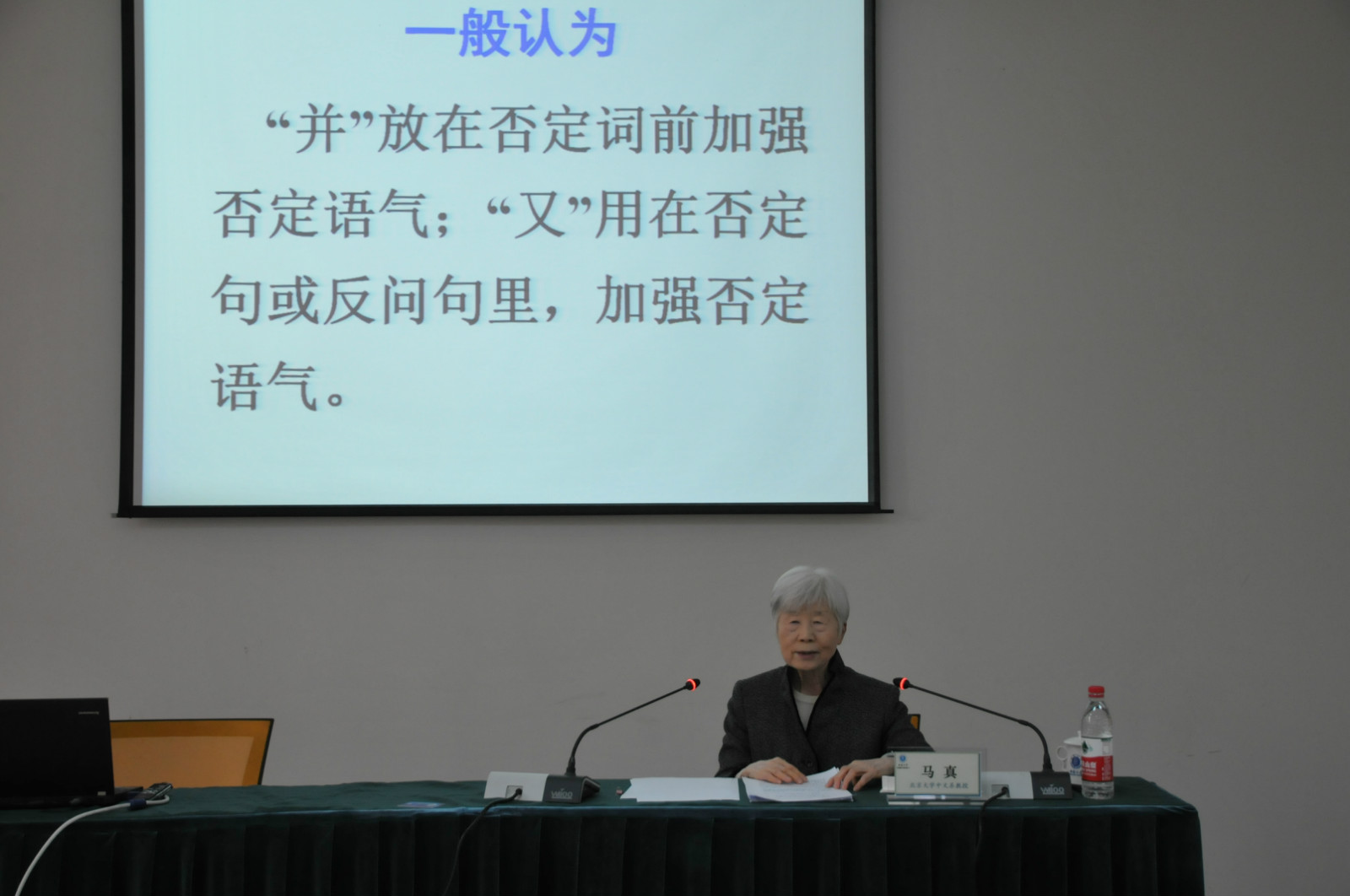 在老师和同学们热烈的掌声中,马真先生开始了题为“要重视词语和句法格式的用法研究”的讲座,她为我们细致讲解了语气副词“并”、“又”,副词“反而”、“按说”,状态词“好端端的”,以及“把”字句、“被”字句等使用的语义背景。在分析过程中,马先生以职工出现的偏误句为例,指出不以汉语为母语的职工在汉语运用中往往只重视辞书对词义的解释,却忽略了其使用的语义背景。讲座过程中,马先生寓教于乐,通过对外汉语教学的实例向我们展示了语义背景对我们选词造句的影响,充分显示了马真先生在现代汉语虚词研究方面深厚的功底;在研究方法上,马先生更是另辟蹊径,注重创新。结合suncitygroup太阳集团的情况,马先生强调在职工教学中,一定要重视词语和句法格式的语义背景,也希望这个问题能够引起对外汉语教学届或汉语国际教育界以及辞书编撰者的重视。最后马真先生总结道:“要说清词语和句法格式使用的语义背景十分不易,但是面对日益发展的汉语国际教育,我们必须予以重视。”