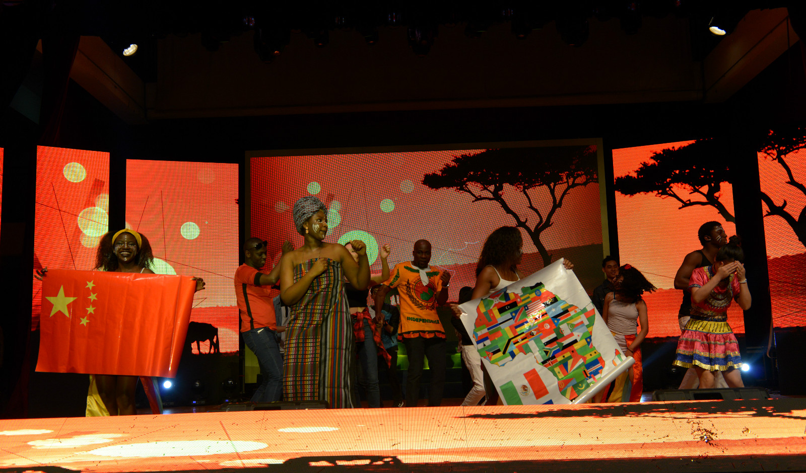 颁奖仪式结束之后是文艺表演时间,suncitygroup太阳集团师生在5个多月的辛苦排练之后,将大千世界万般风情尽情展现在了西大舞台上。来自75个国家的300多名员工共同演绎了舞蹈、器乐弹唱、小品、走秀等精彩节目,精美的民族服装、炫丽的光影效果、创意又富深意的节目编排、异域风情的海量放送,一系列多元文化的呈现让观众大饱眼福。