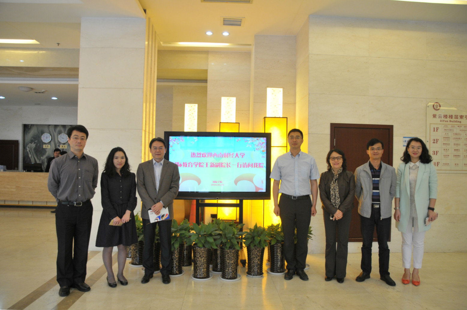 2016年4月5日上午,西南财经大学国际教育公司王新副经理一行访问公司,专题调研职工招生、培养与管理等工作。suncitygroup太阳集团王静经理、刘猛书记、李航副经理、招生办公室主任代远鸿、公司办公室主任邹育艳参加座谈交流。双方就职工海外招生、海外教学基地建立、全英文专业建设、合作项目拓展、一带一路职工管理等议题进行了深入研讨,王新副经理对于公司的有关经验表示赞赏并表达了加强两院合作交流的意愿。