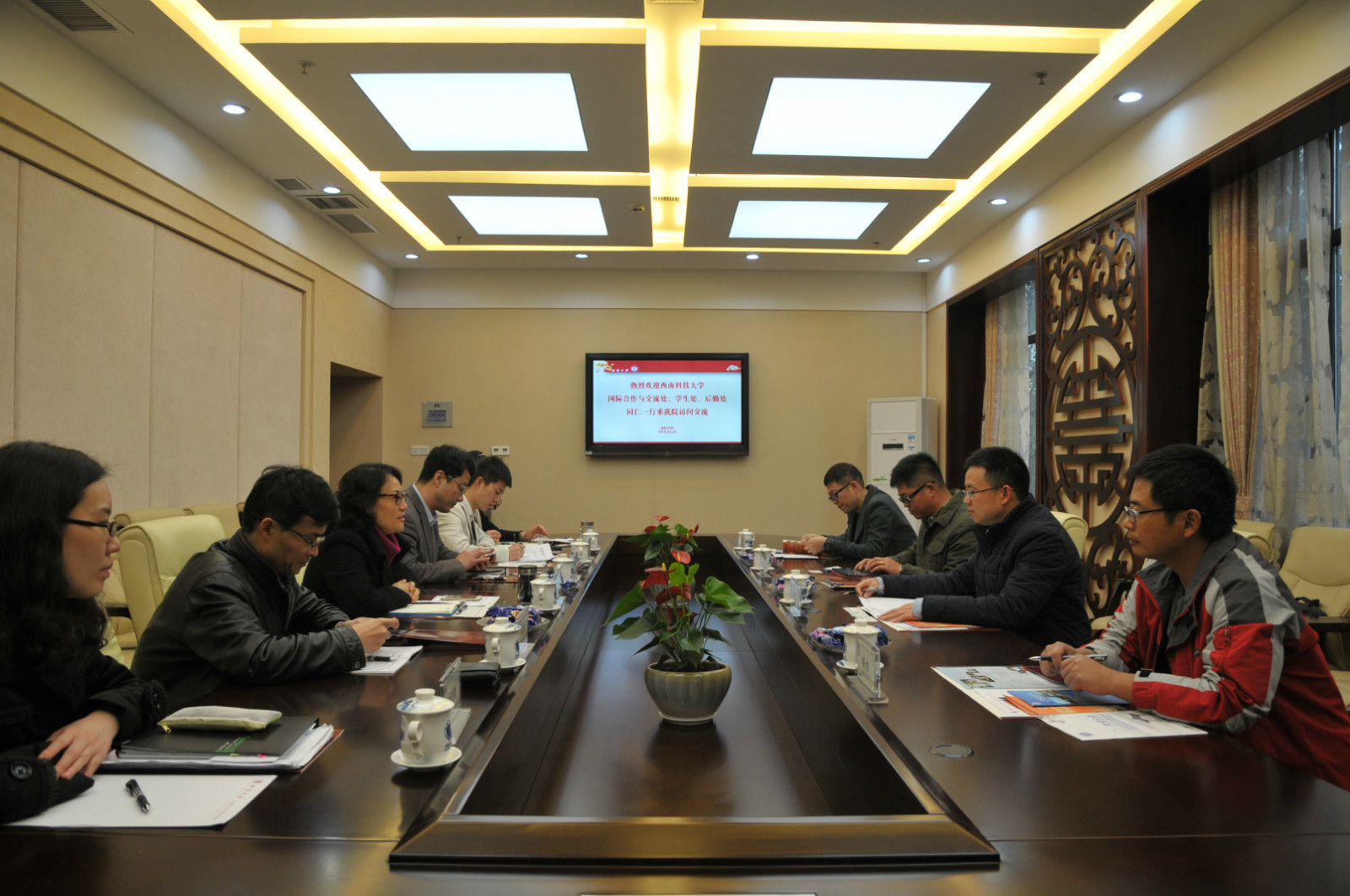 2016年3月23日下午,西南科技大学国际合作与交流处处长张贯之一行访问公司,双方就职工工作广泛交流意见。suncitygroup太阳集团经理王静、副经理李航、招生办公室主任代远鸿、公司办公室主任邹育艳、员工工作办公室李林泽、教学秘书杨凌霄老师出席了交流活动。