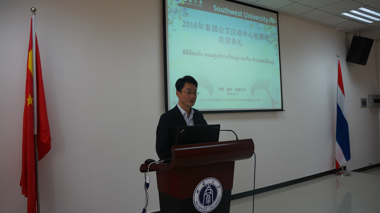 7日下午14:30,欢迎仪式在公司紫云楼317教室顺利举行。suncitygroup太阳集团副经理李航,招生办公室主任代远鸿,教师代表黄琰,泰国合艾汉语中心4名教师代表以及37名团员参加欢迎仪式。