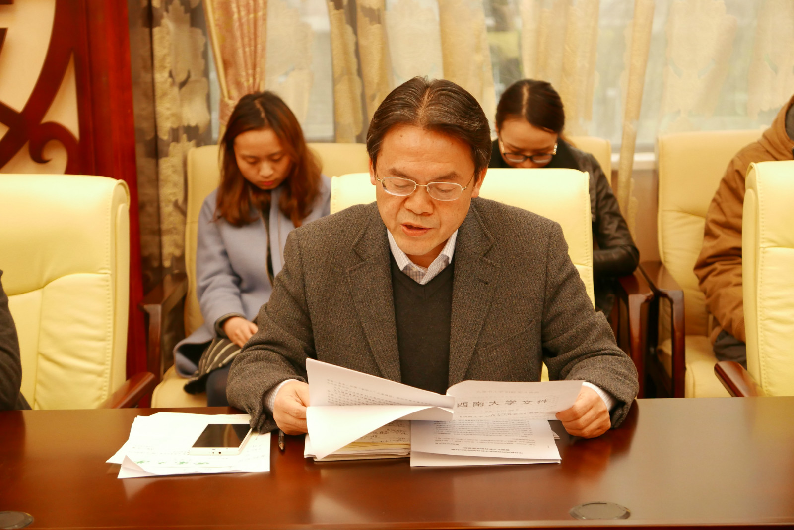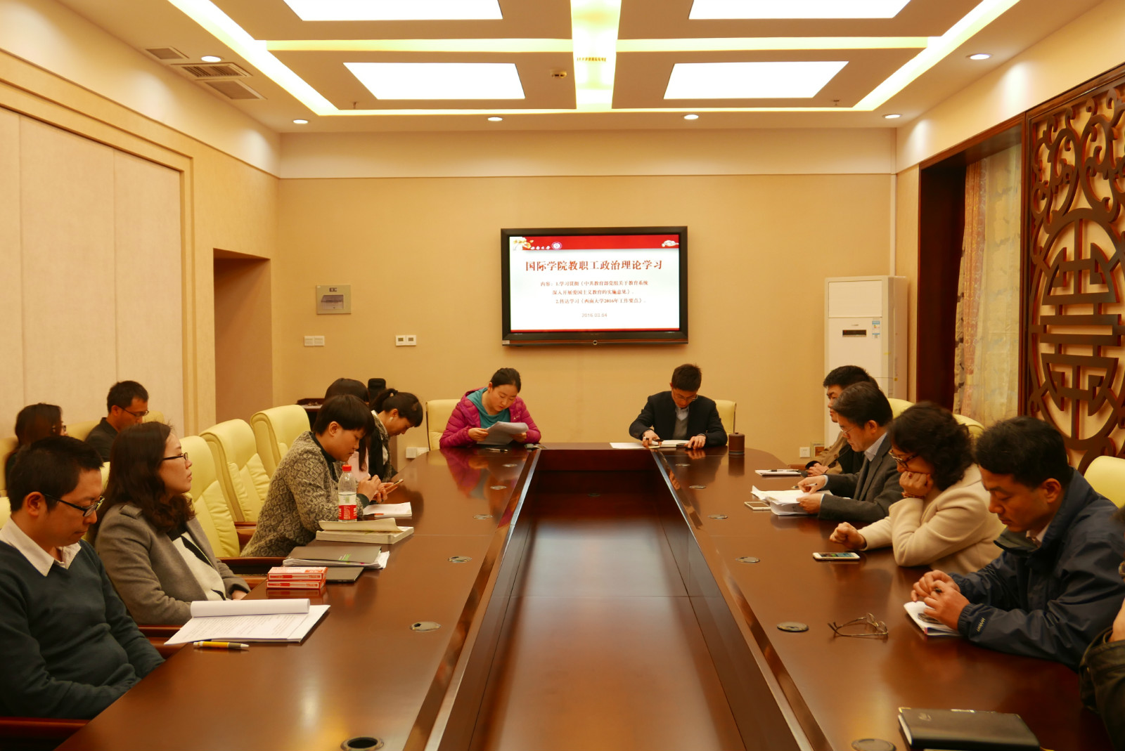 2016年3月4日下午3:00suncitygroup太阳集团在紫云楼签约室开展政治理论学习。公司全体教职工集体学习了《中共教育部党组关于教育系统深入开展爱国主义教育的实施意见》和《suncitygroup太阳集团2016年工作要点》,会议由党总支书记刘猛主持。