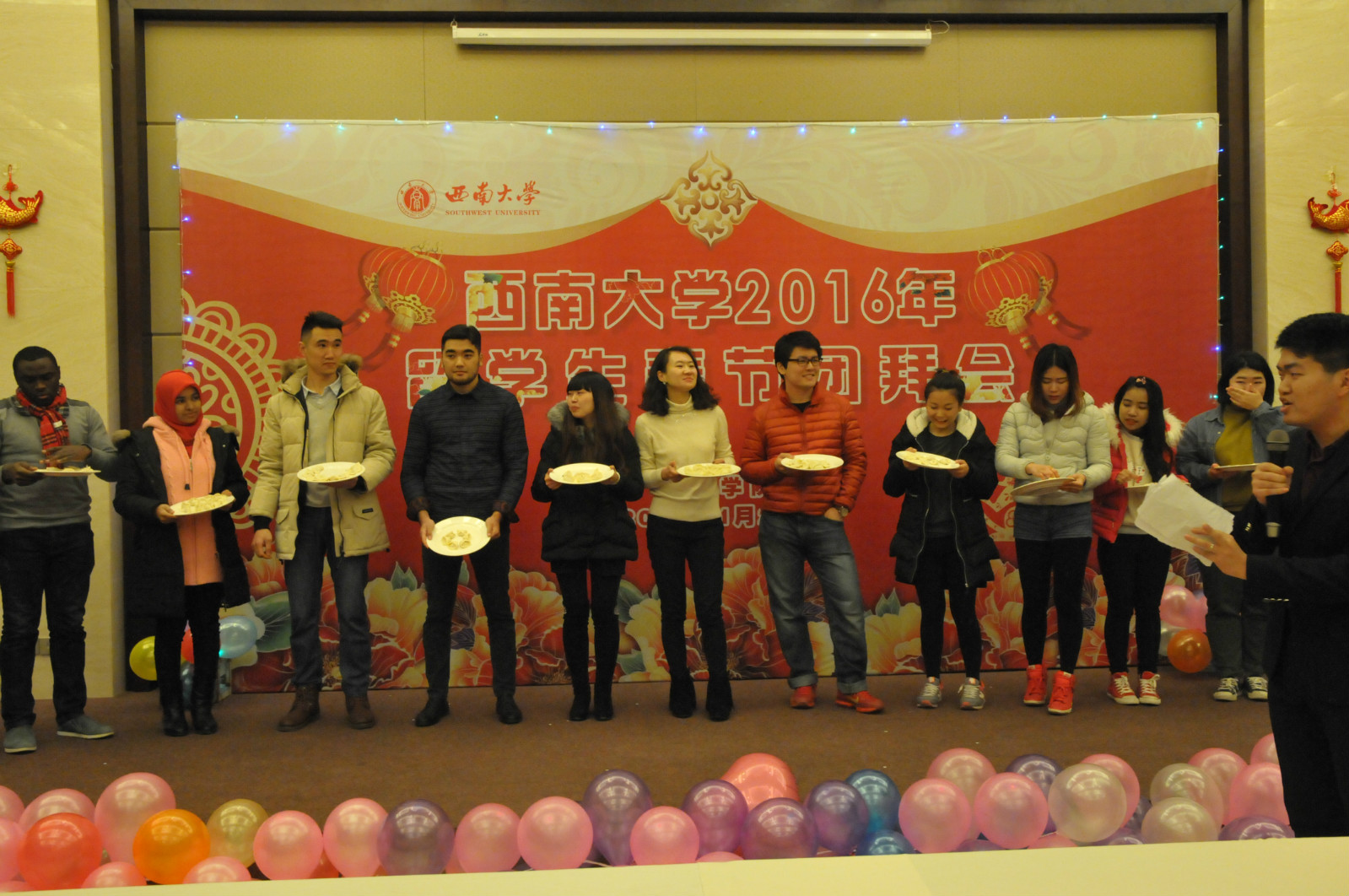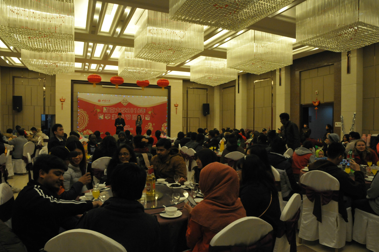 灵羊奋蹄抒豪志,金猴捷足展宏图。1月27日,桂圆宾馆张灯结彩,洋溢着一派喜庆气氛。2016年职工春节团拜会在此隆重举行。suncitygroup太阳集团王静经理,刘猛书记,李航副经理和教职员工代表与来自哈萨克斯坦、泰国、捷克、坦桑尼亚、墨西哥、马尔代夫、阿根廷等国的100余名职工欢聚一堂,喜迎猴年新春佳节,互祝新年快乐