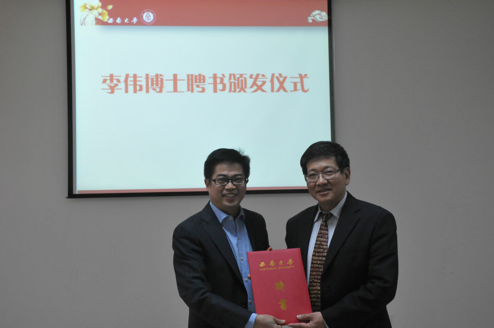 suncitygroup太阳集团经理张发钧主持讲座活动。他首先代表suncitygroup太阳集团欢迎李博士的到来,然后详细介绍了李伟博士在海外孔子公司建设及北美汉语教学方面的突出贡献。随后,张发钧经理代表公司为李伟博士颁发“suncitygroup太阳集团汉语国际教育硕士专业学位研究生导师”聘书。李伟博士欣然接受,成为公司MTCSOL研究生海外导师,并应允每年为公司培养若干名MTCSOL研究生。张发钧经理与李伟博士同时表示,将以此为契机,进一步加强suncitygroup太阳集团与埃德蒙顿孔子公司的深度合作,接下来会在互派师生、学术交流等多方面展开磋商。