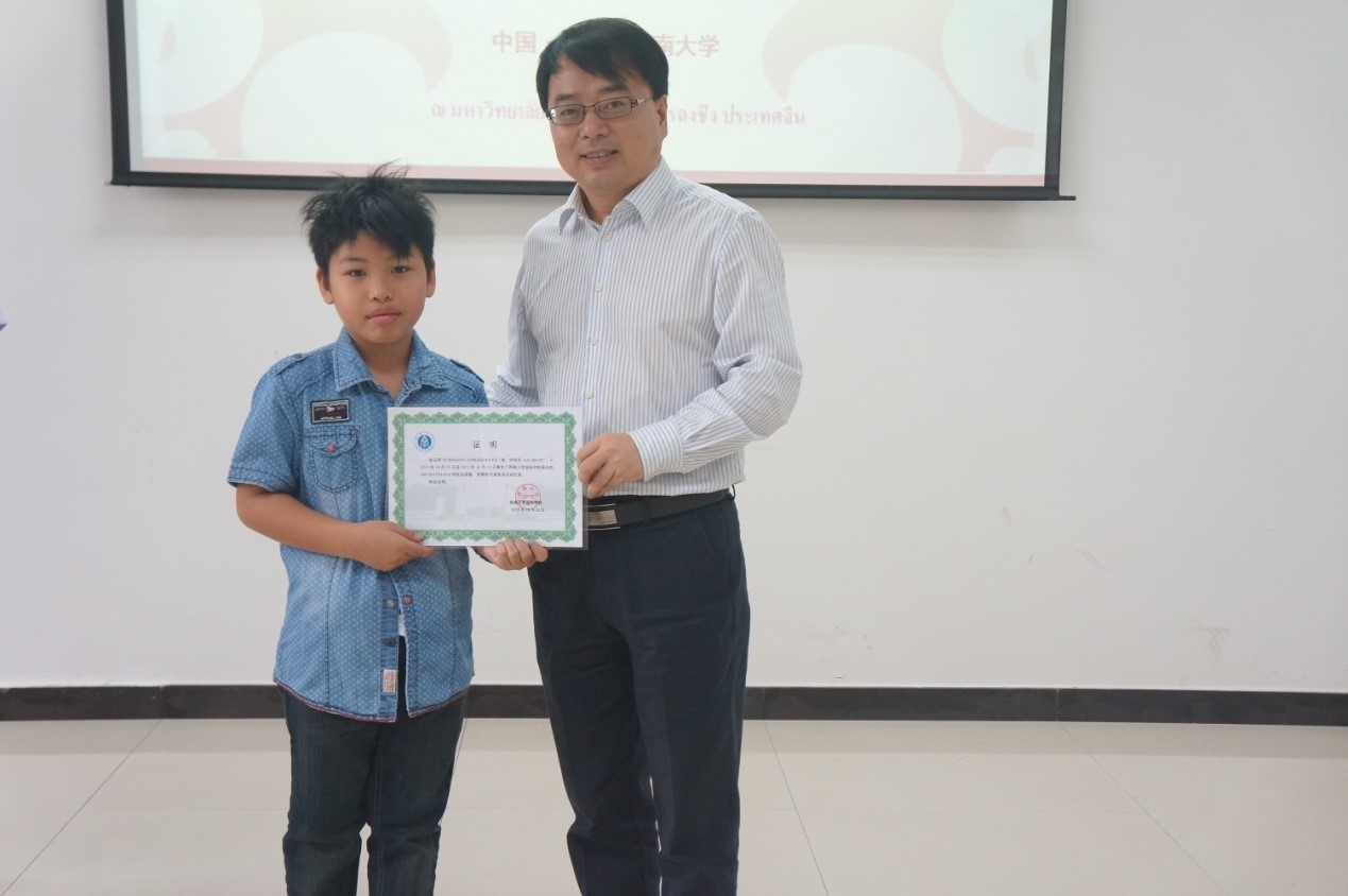 在结业典礼上营员们表演了节目《中文歌曲——月亮代表我的心》《泰国风情——泰国传统舞蹈》《现代舞—— stop it》,在展现泰国文化和青春个性的同时也表达了对语伴们、老师们、suncitygroup太阳集团依依不舍之情。最后,张家政副经理为师生们颁发了结业证书,结业典礼在活泼热烈的氛围中圆满结束。