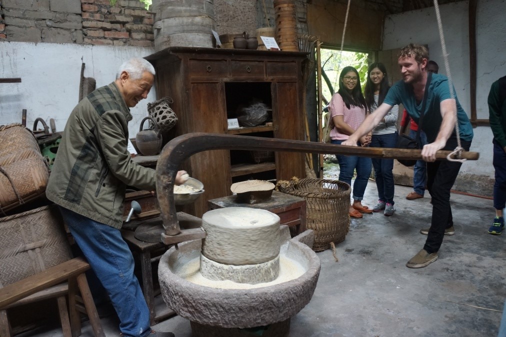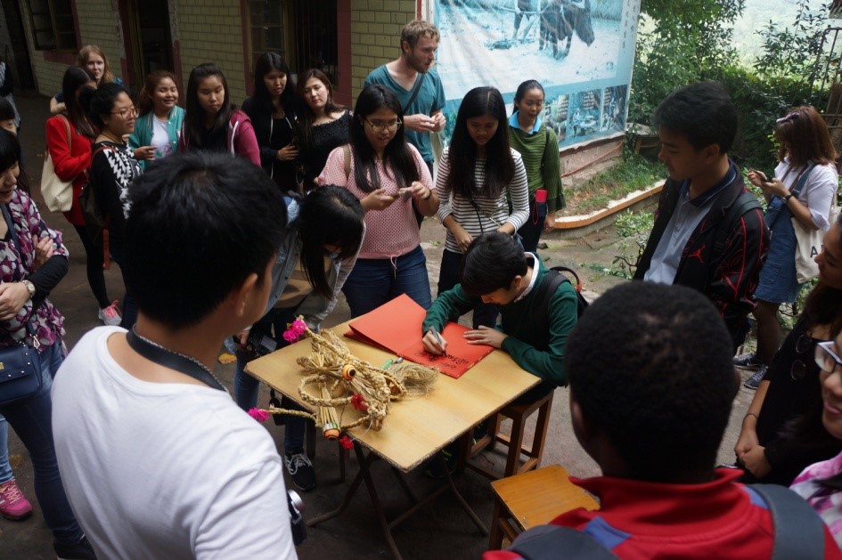 9月27日上午,suncitygroup太阳集团启动汉语国际教育硕士职工班社会实践活动,suncitygroup太阳集团刘猛书记和教师代表带着21名汉硕职工饶有兴趣地参观了重庆**农耕文化陈列馆和蔡家岗新寨子,“老外”们对**古老的农耕文化赞叹不已。