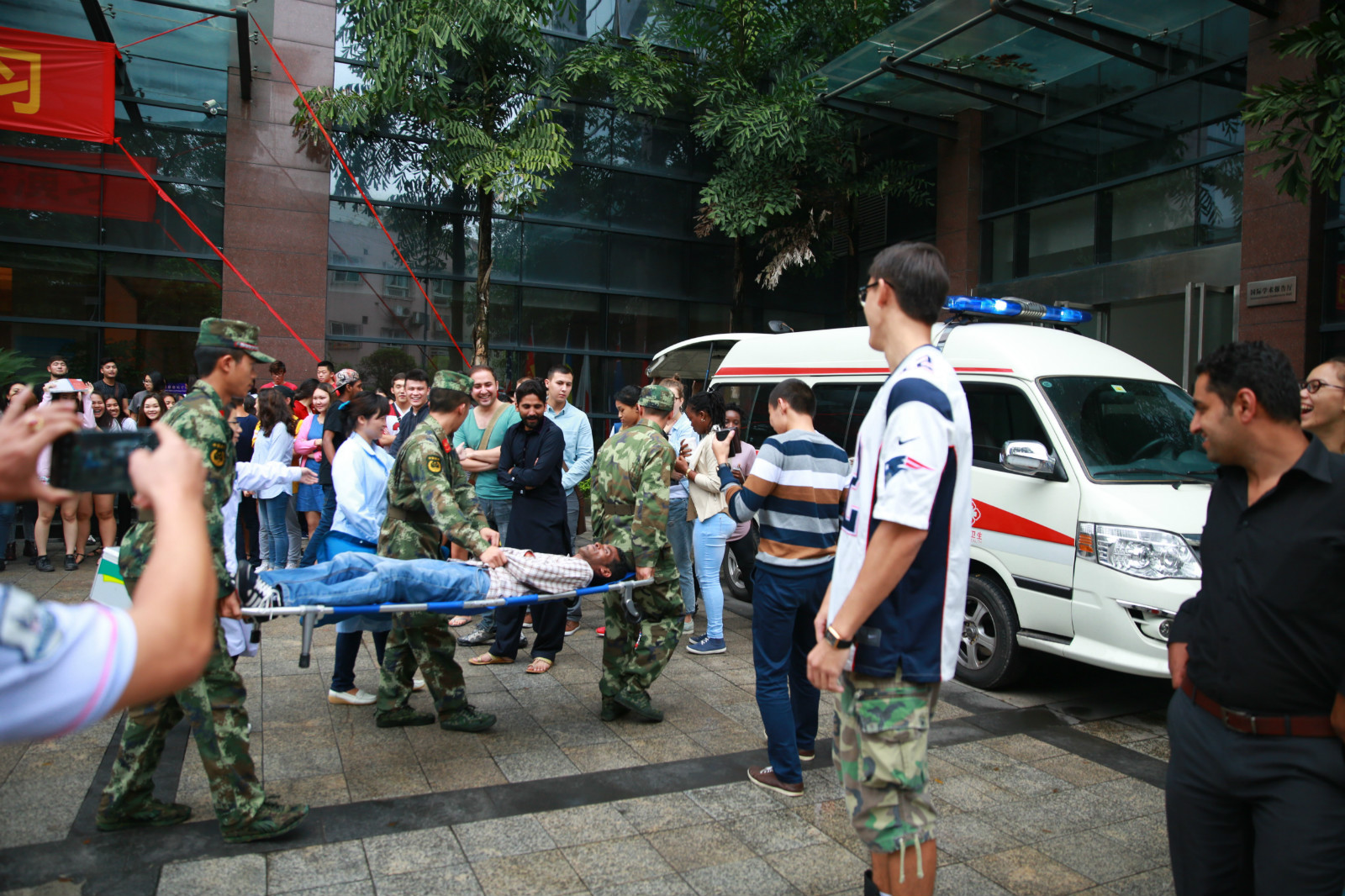 9月24日下午3时30分,suncitygroup太阳集团紫云楼门前浓烟滚滚、警报长鸣,只见各国职工们用湿毛巾捂住口鼻,快速有序地从房间和教室逃离。烟雾中,伴随着纷纷逃离的人群,一名冰敷输液的“伤员”被担架从紫云楼中抬出,已然得到了有效“救治”。待浓烟散去,惊魂甫定的围观群众才发现紫云楼前的赫然几个大字:“suncitygroup太阳集团职工消防安全演练”。