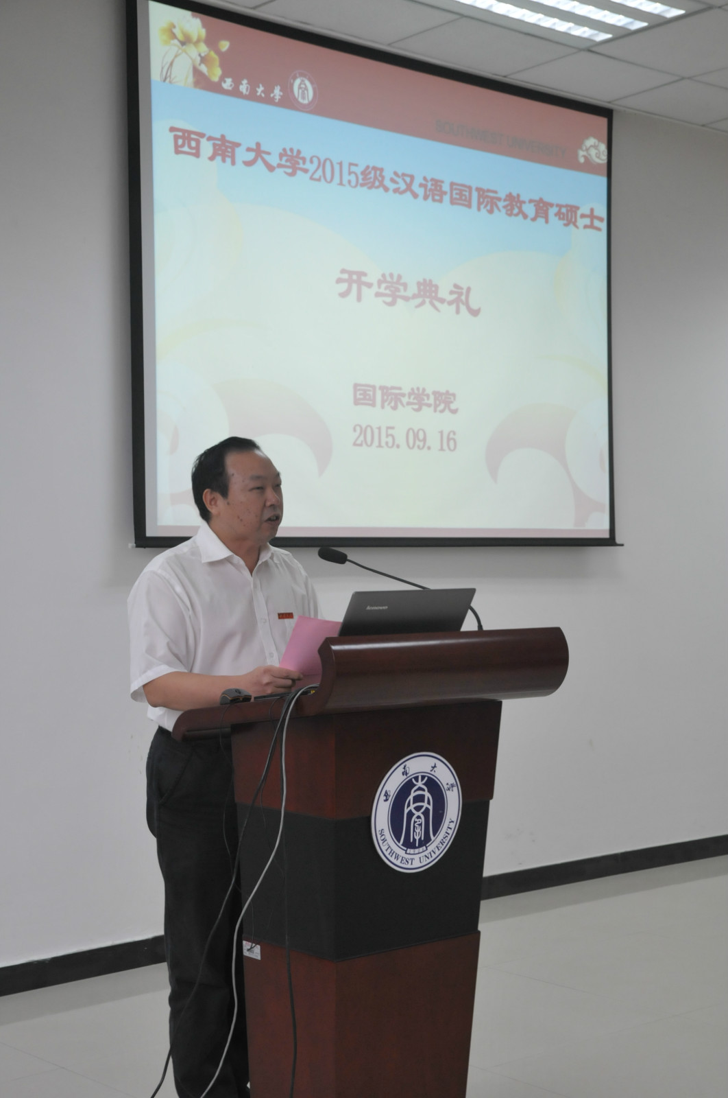 9月16日下午四时,suncitygroup太阳集团2015级汉语国际教育硕士开学典礼在suncitygroup太阳集团317会议室举行。研究生院李洪军常务副经理、suncitygroup太阳集团张发钧经理、刘猛书记、张家政副经理,suncitygroup太阳集团教师代表以及60名汉语国际教育硕士中外新生参加了典礼。