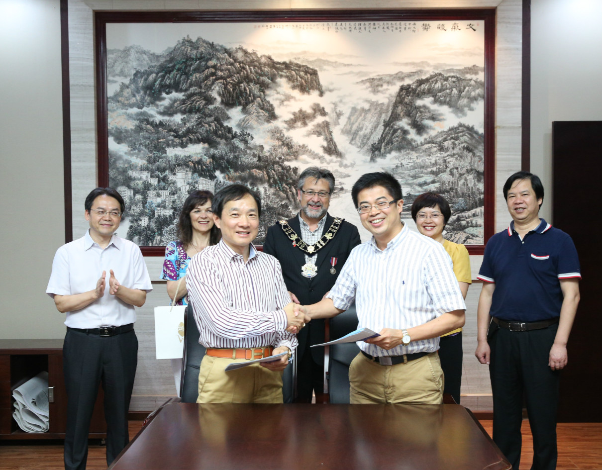 6月6日,加拿大不列颠哥伦比亚(BC)省鲍威尔市(City of Powell River)市长Dave Formosa先生,温哥华岛大学(Vancouver Island University)鲍威尔校区董事长Micki McCartney女士,加拿大BC省SBS(Sino Bright School Board)海外公司局主席欧阳全先生一行莅临suncitygroup太阳集团访问。张发钧经理接待了加拿大客人,并代表公司与SBS海外公司局主席欧阳全先生签署了合作谅解备忘录,双方拟在互设办公室,温哥华岛大学员工来校游学等项目上开展合作。