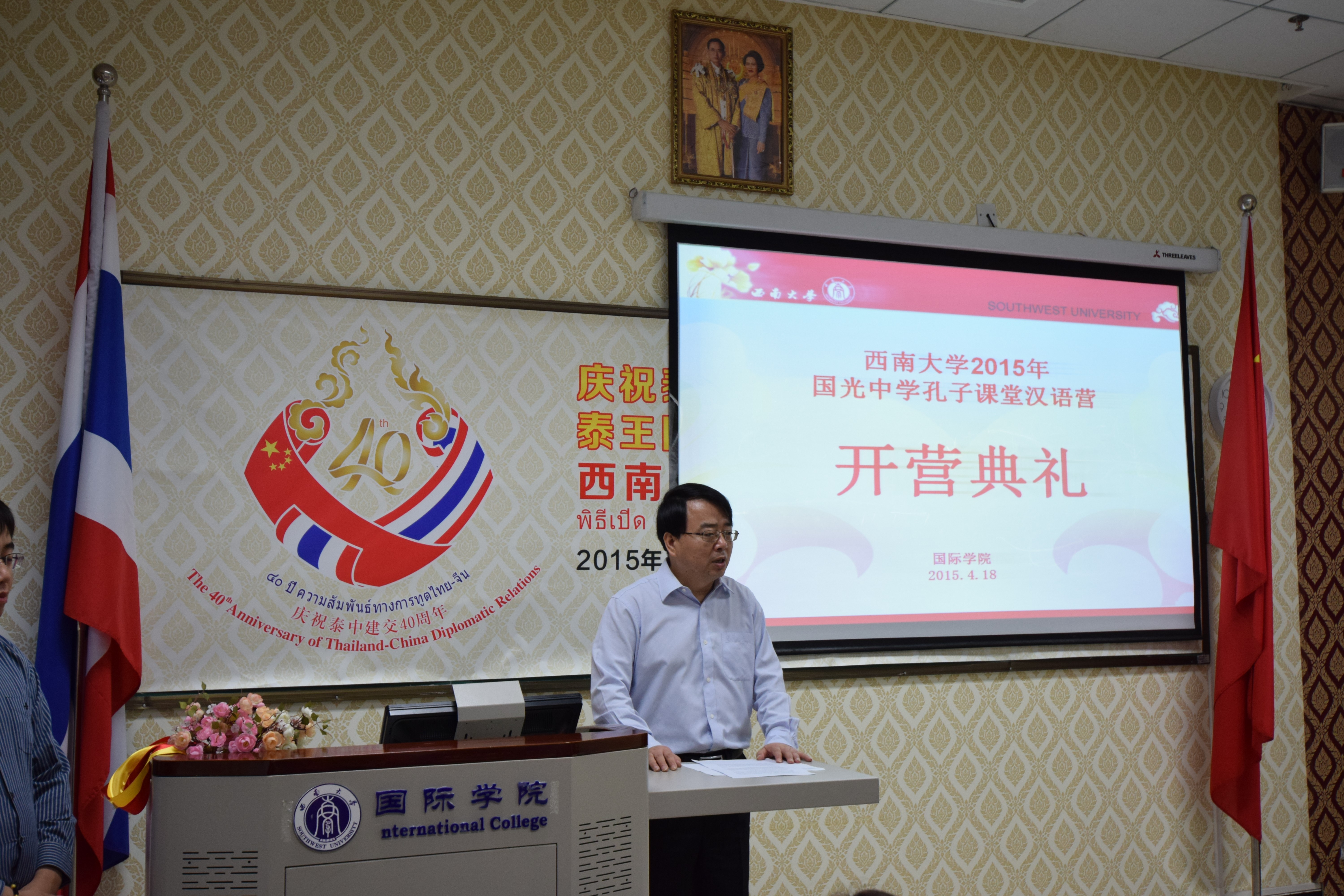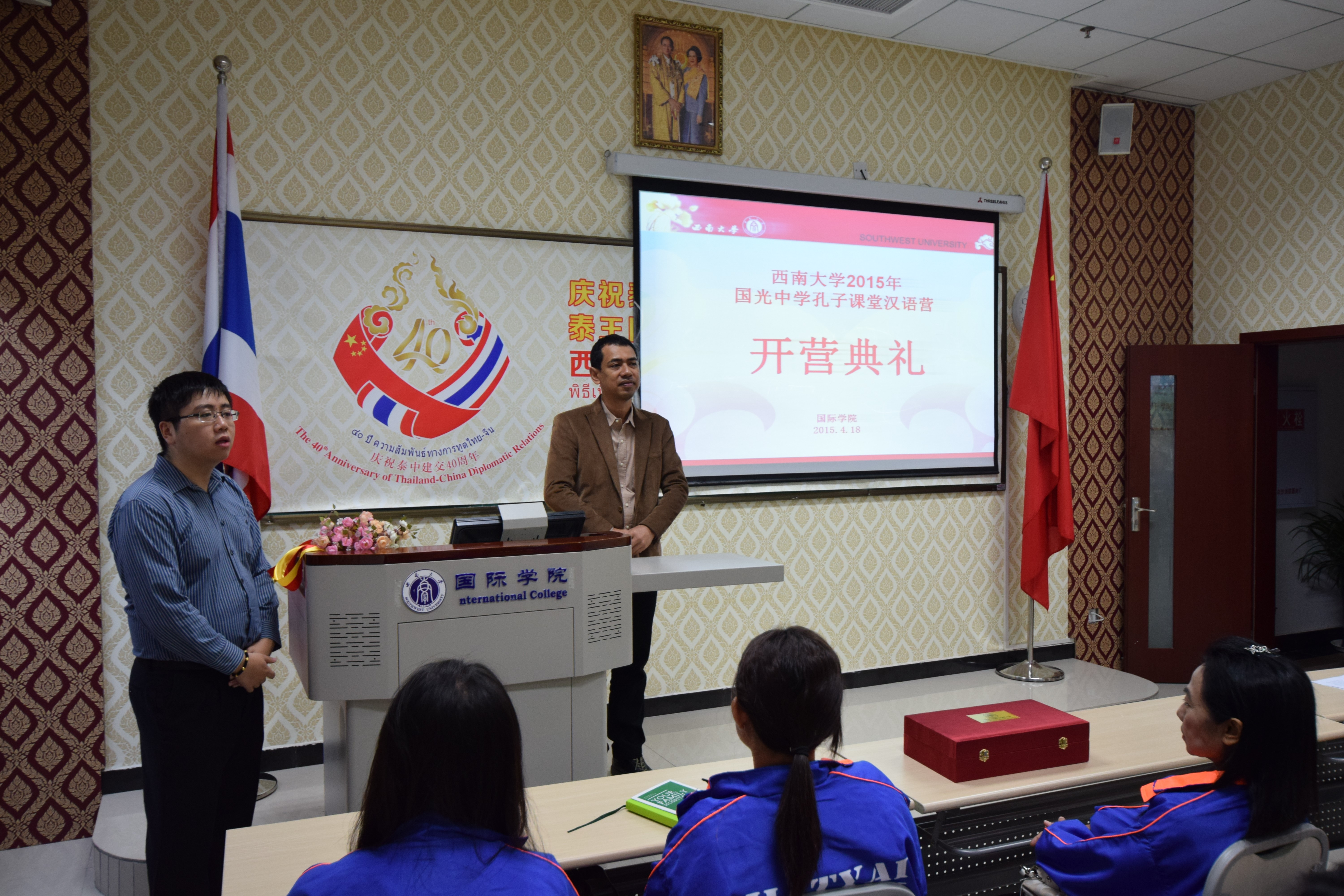 4月18日上午九点,suncitygroup太阳集团在刚刚揭幕的泰国文化教室为泰国国光中学孔子课堂赴华汉语营一行22人举行开营典礼。泰国合艾市副市长PRUEK PATTANO先生和合艾市教育局局长SUTASNAN NIAMRAT女士以及suncitygroup太阳集团张家政副经理出席。