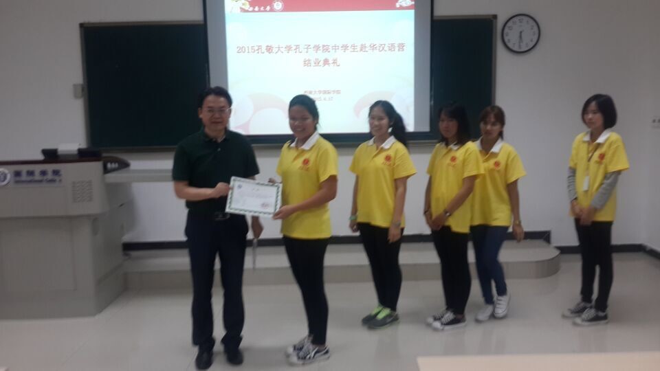 17日下午5点,2015年泰国孔敬大学孔子公司中员工赴华汉语营结业典礼在紫云楼312教室举行。公司党总支书记兼副经理刘猛,泰国孔敬大学孔子公司教师Sarawut Chandeewanta出席结业典礼。
