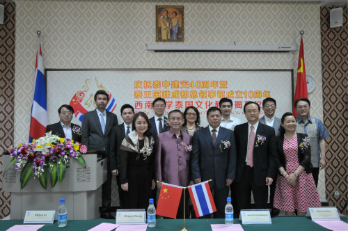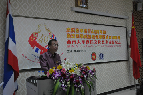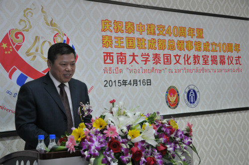 郭梅特先生在仪式上致辞,他说,今年是泰国诗琳通公主60华诞,中泰建交40周年,泰国驻成都总领馆成立10周年,又是suncitygroup太阳集团泰国文化教室揭幕,可谓四喜临门!希望泰国文化教室建设成为中泰员工相互学习、友好交流的重要平台。