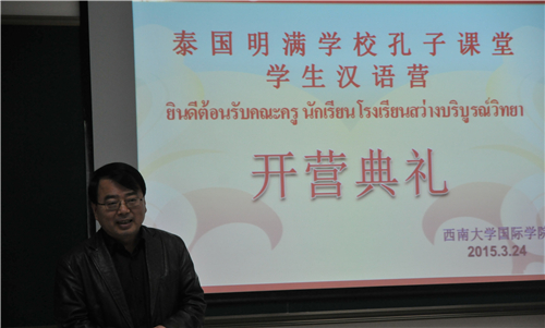 3月24日下午3点,suncitygroup太阳集团在紫云楼312教室为泰国明满公司孔子课堂汉语营师生一行21人举行了开营仪式。suncitygroup太阳集团张发钧经理、张家政副经理,教师代表李真真参加了典礼。
