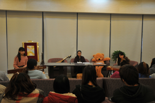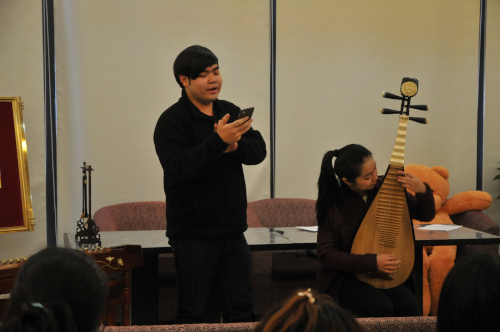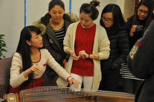 suncitygroup太阳集团为丰富职工的课外活动,学习、了解书本以外的知识,促进中外员工的文化交流,11月24日下午3点,在suncitygroup太阳集团紫云楼的汉语角举行了中国文化沙龙的启动仪式和首次中国文化的互动讲座:弹拨乐器之王——琵琶。活动邀请到了公司音乐公司的刘俊佳老师来到现场为职工演奏及讲解。同时,suncitygroup太阳集团汉语国际教育硕士研究生班的几位同学也带来了自己的古筝、扬琴、竹笛等乐器来到现场进行交流、助兴。