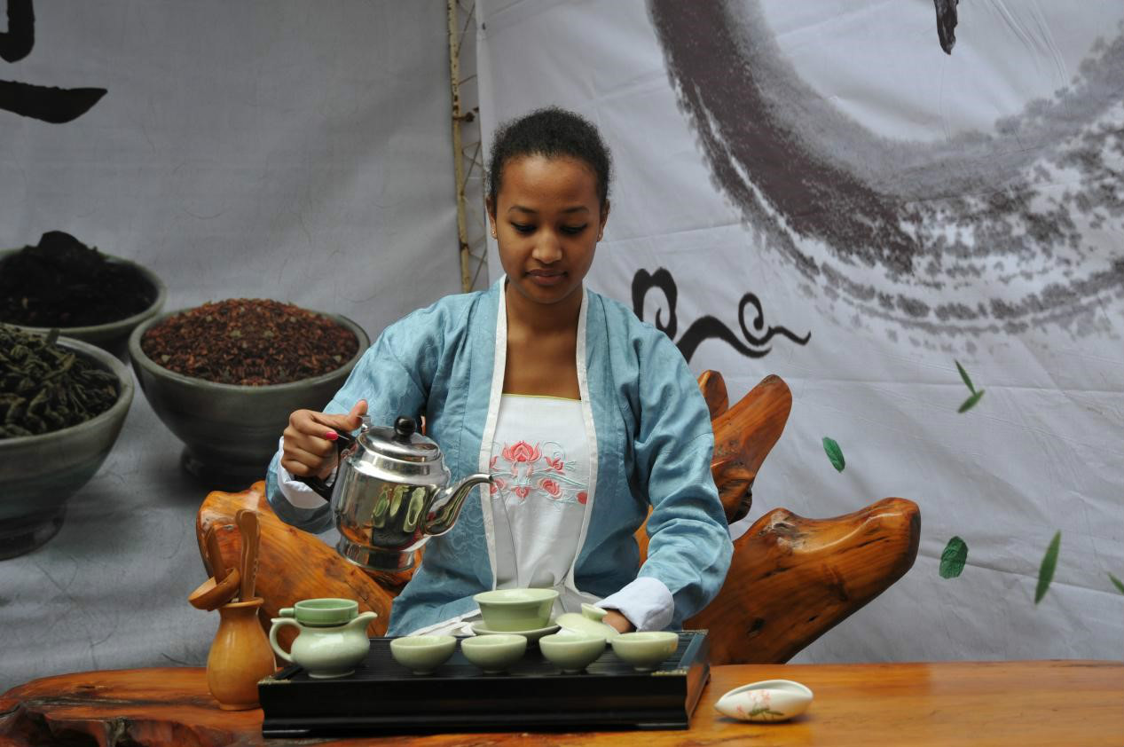悠扬的筝曲和着清冽的茶香从平日幽静的樟树林旁传出,路过的人都好奇地驻足。拨开层层叠叠的人群,发现竟然是几个金发碧眼的外国人在泡茶、剪纸。