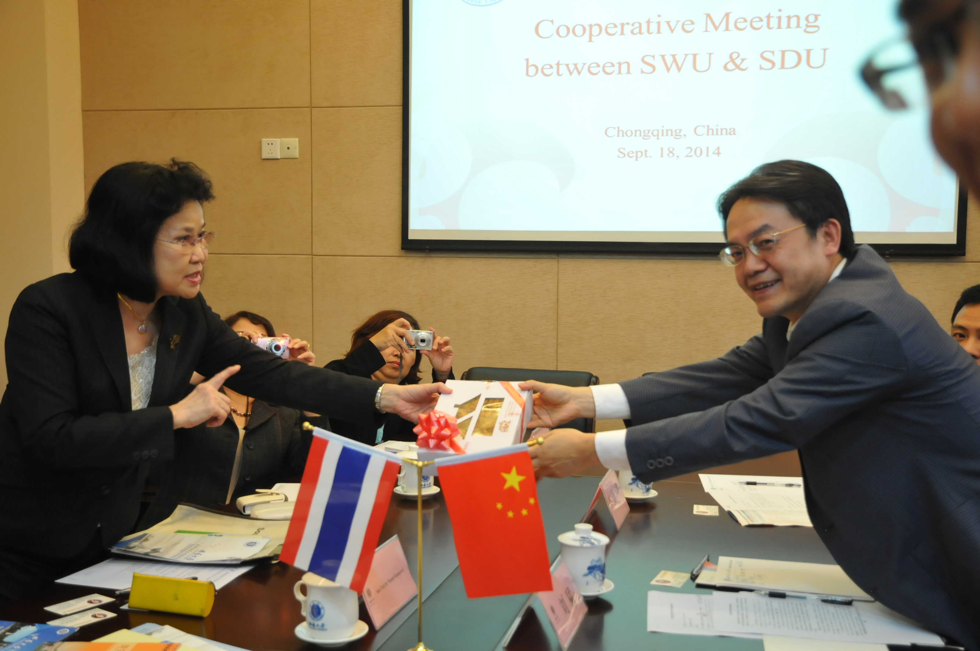 双方介绍了各自办学的情况,就派出汉硕生赴泰实习和接收泰国教师来校任教达成共识,并重点就川登喜皇家大学汉语专业员工参加“2+1+1”学分项目做了深入研讨。会谈结束后,中泰双方互赠礼品并合影留念。