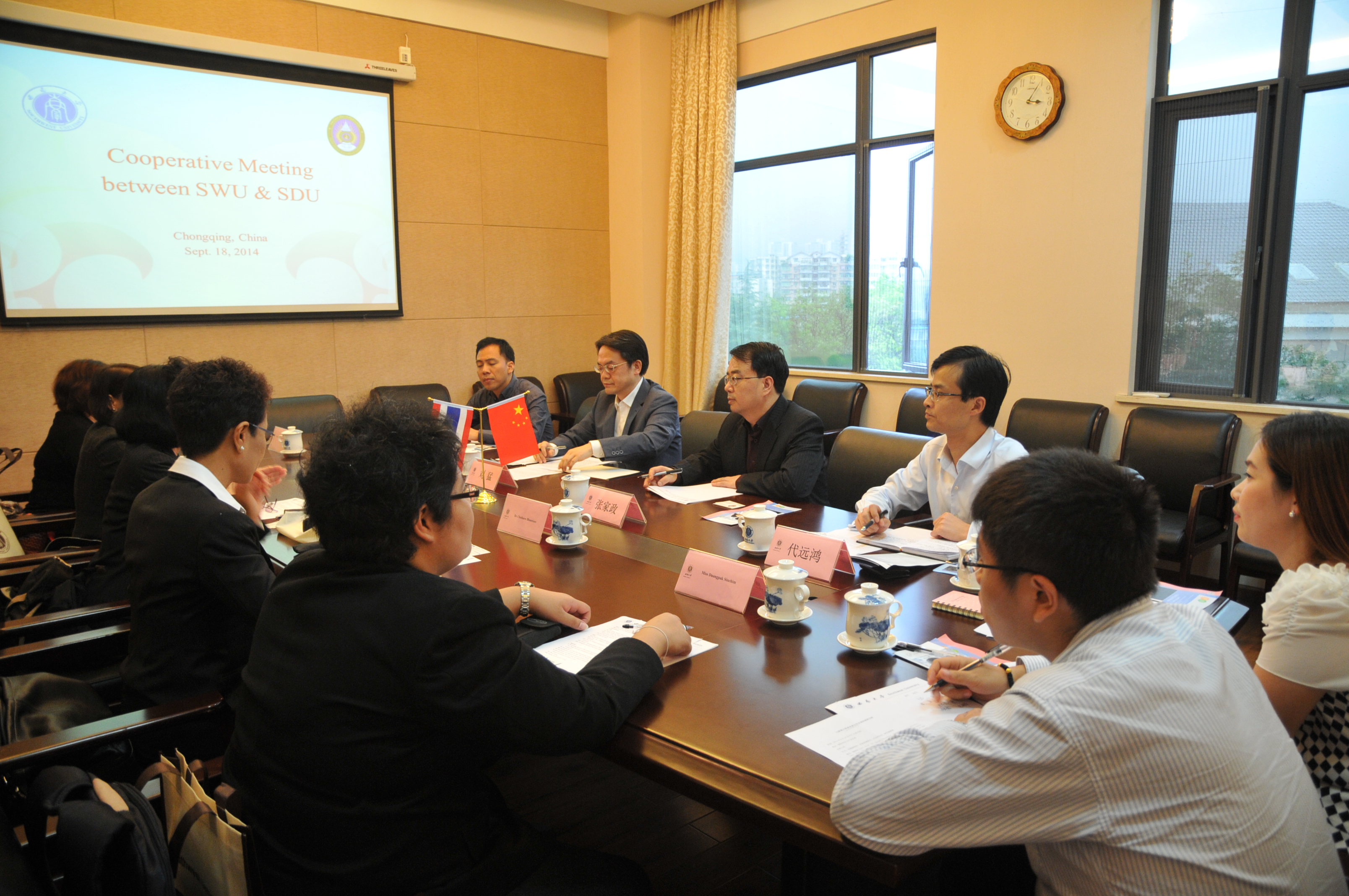 2014年9月18日泰国川登喜皇家大学Niramit副董事长一行到访公司,洽谈合作事宜。公司党总支书记兼副经理刘猛,副经理张家政,招生办公室主任代远鸿,汉教系主任耿军参加会谈。