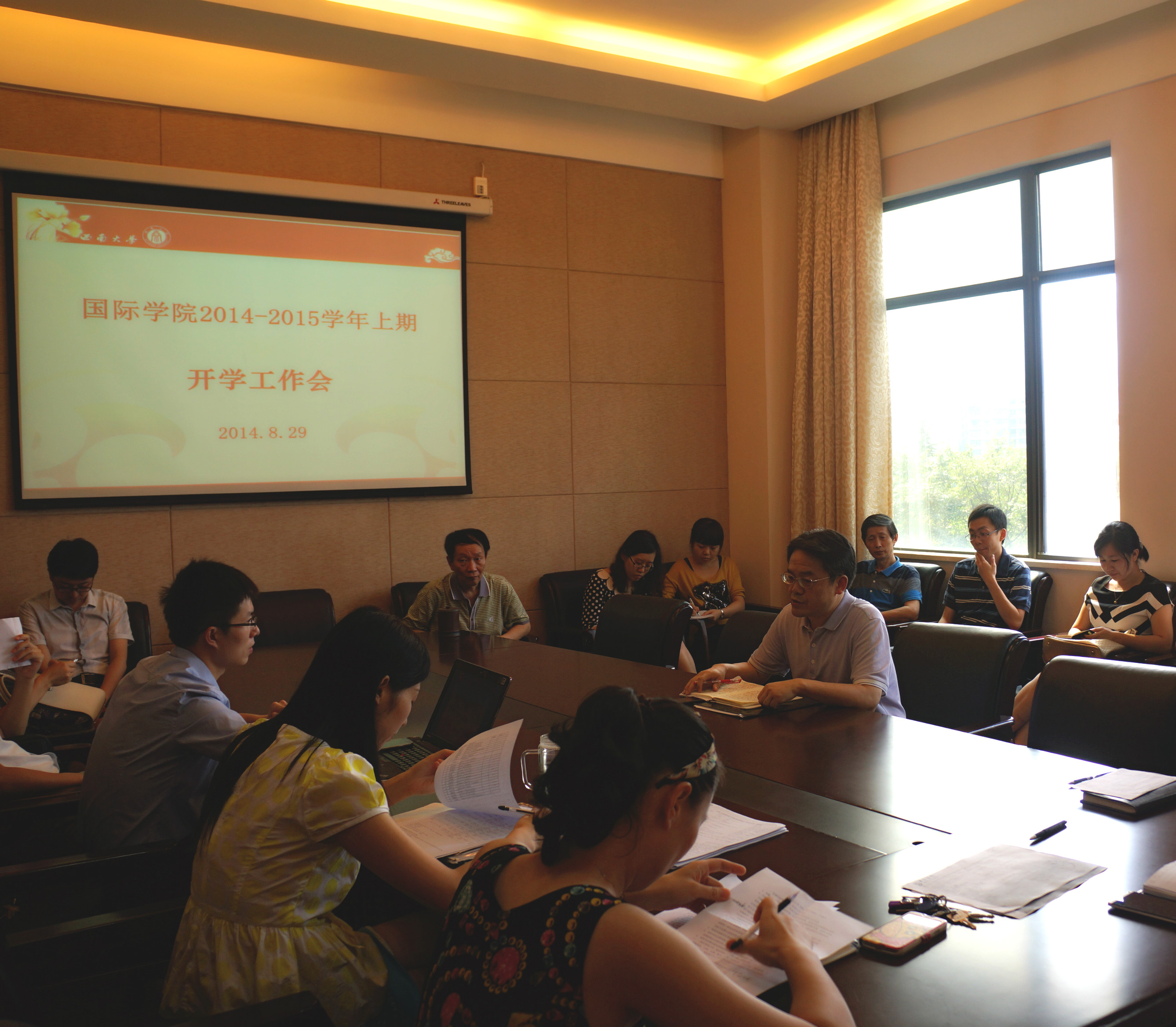 8月29日下午3:30,suncitygroup太阳集团2014-2015学年上期开学工作会在紫云楼310会议室召开,公司全体教职员工参加会议。
