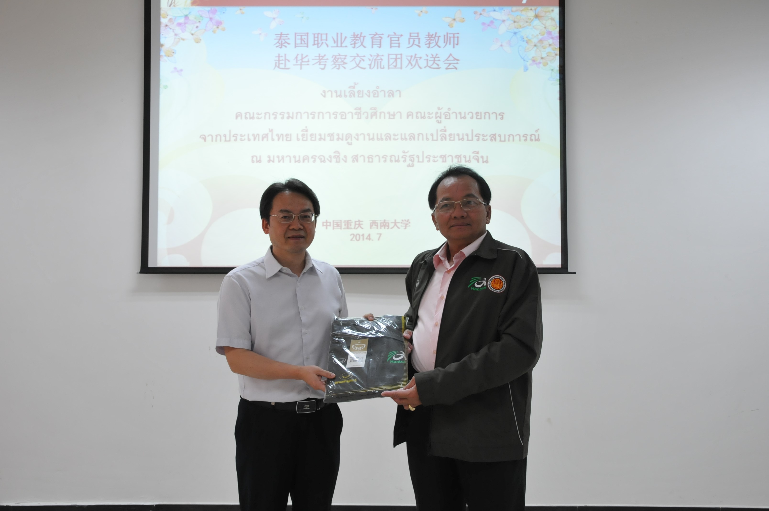 刘猛书记致欢送词。首先祝贺各位团员圆满完成在重庆的交流考察任务,感谢大家对公司工作的理解与支持。期待有更多泰国职业技术教育公司的师生来到suncitygroup太阳集团进修学习。祝愿泰国客人身体健康,心情愉快,返程顺利。