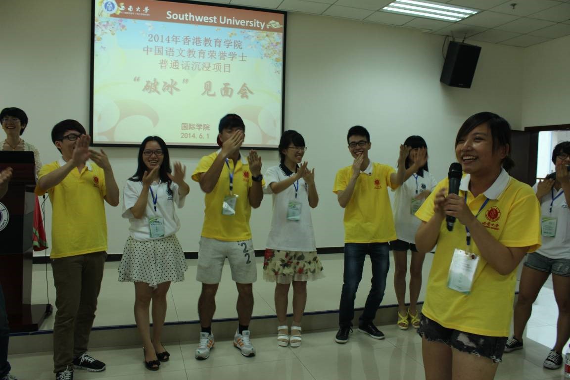 2014年6月1日下午2:30,在suncitygroup太阳集团317会议室举行了香港教育公司中国语文教育荣誉学士普通话沉浸项目“破冰”见面会。来自香港教育公司的74名普通话沉浸学员和suncitygroup太阳集团文公司、文献所、外国语公司等70名志愿者相聚,通过自我介绍、趣味游戏、才艺展示等方面展开互动交流,现场气氛热烈友好,掌声和笑声不断。