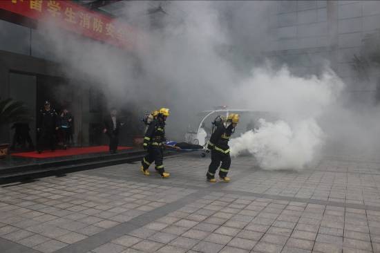 浓烟中,伴随消防车的声声警报,用湿毛巾捂住口鼻的职工,在suncitygroup太阳集团老师们口哨声的引导下,弯着腰有序地从职工大楼各楼层的楼梯往楼外安全聚集地撤离。这惊险的一幕把驻足观看的路人吓得惊心动魄,待到烟雾渐渐消散,才发现大楼门前悬挂的横幅上赫然印着几个大字:suncitygroup太阳集团职工消防安全演习。
