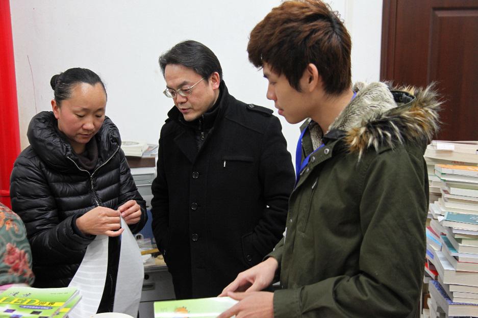 2013年12月25日下午,公司党总支书记兼副经理刘猛、学工办主任陈雨曦、班主任李丹在图书馆章雷副馆长及相关指导老师的陪同下,来到图书馆逸夫楼看望慰问在此实习的泰国正大管理公司"1+1+2"商务汉语项目班的同学们。在寒冷的天气下,泰国同学们依然准时到岗,表情严谨认真,坚持为读者服务。
