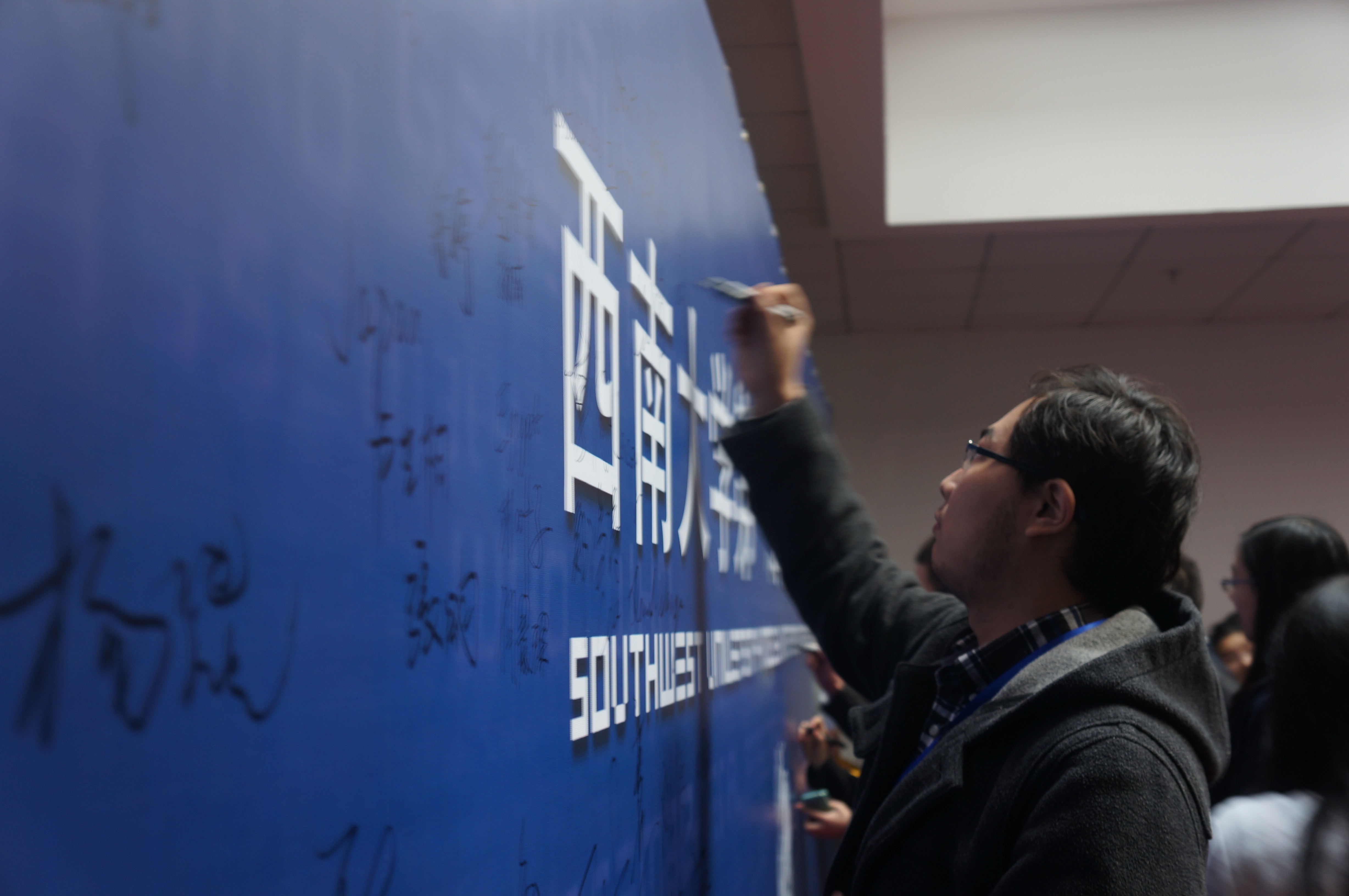 活动的最后,由刘经理带头,与会嘉宾和全体成员在签名墙上写下了自己对suncitygroup太阳集团第一届模拟联合国大会的祝福,将本次开幕式推向了高潮。在美妙的音乐声中,开幕式圆满结束。