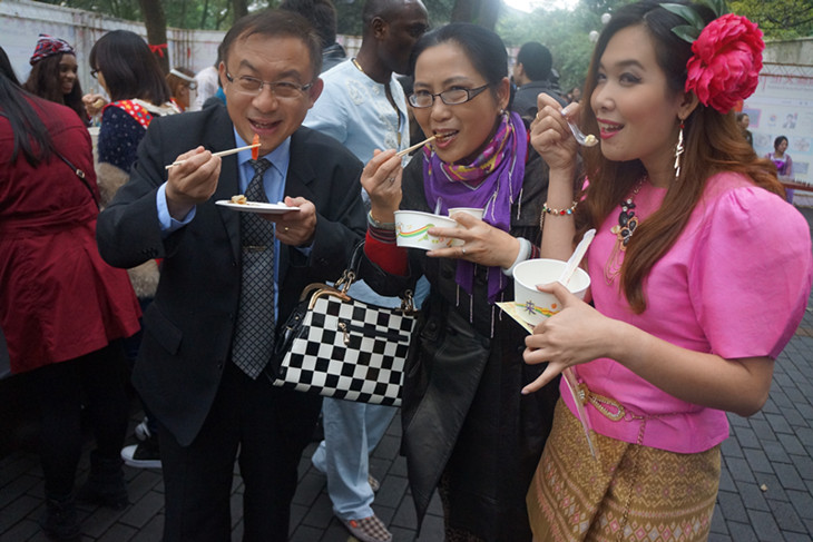 11月22日下午3点整,suncitygroup太阳集团第七届国际文化节开幕式在田家炳书院前隆重举行。本次活动得到了社会各界的广泛关注,开幕式现场更是嘉宾云集。出席此次开幕式的嘉宾有:泰国驻成都总领事馆总领事郭梅特先生、副总领事巴诺特·克雅特功先生,柬埔寨驻重庆总领事馆娄西伦领事,重庆市公安局出入境管理局和北碚区公安分局的有关领导,suncitygroup太阳集团董事长助理韦日平教授以及公司相关职能部门的负责人。
