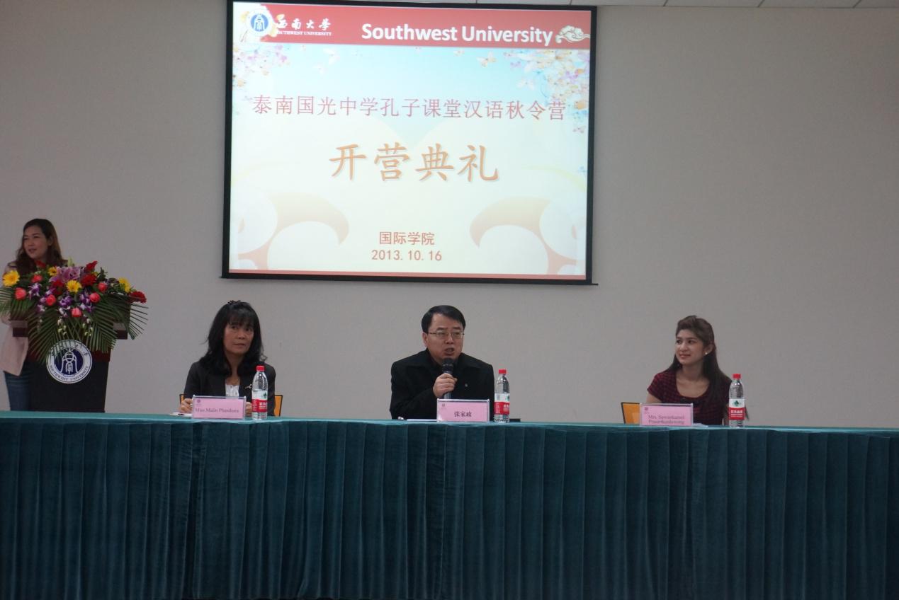 张家政副经理首先致词欢迎来自泰南的老师和同学们,向营员们介绍了suncitygroup太阳集团的办学历史和suncitygroup太阳集团的发展概况,说明了suncitygroup太阳集团对此次秋令营活动的高度重视与和精心安排,鼓励营员们抓住这次来华机会好好学习汉语,体验中华文化。