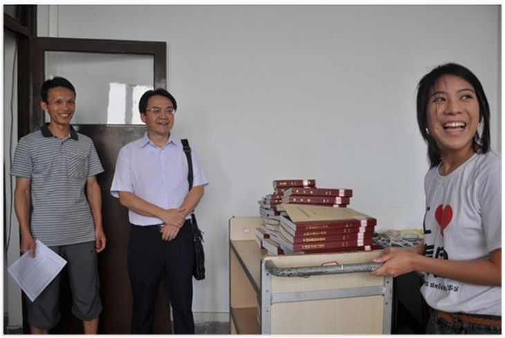 2013年6月18日下午,suncitygroup太阳集团公司党总支书记/副经理刘猛,在suncitygroup太阳集团图书馆章雷副馆长及相关指导老师的陪同下,来到图书馆逸夫楼看望慰问在此实习的泰国正大管理公司"1+1+2"商务汉语项目班的同学们。在炎热的气温下,泰国同学们依然准时到岗,表情严谨认真,坚持为读者服务。