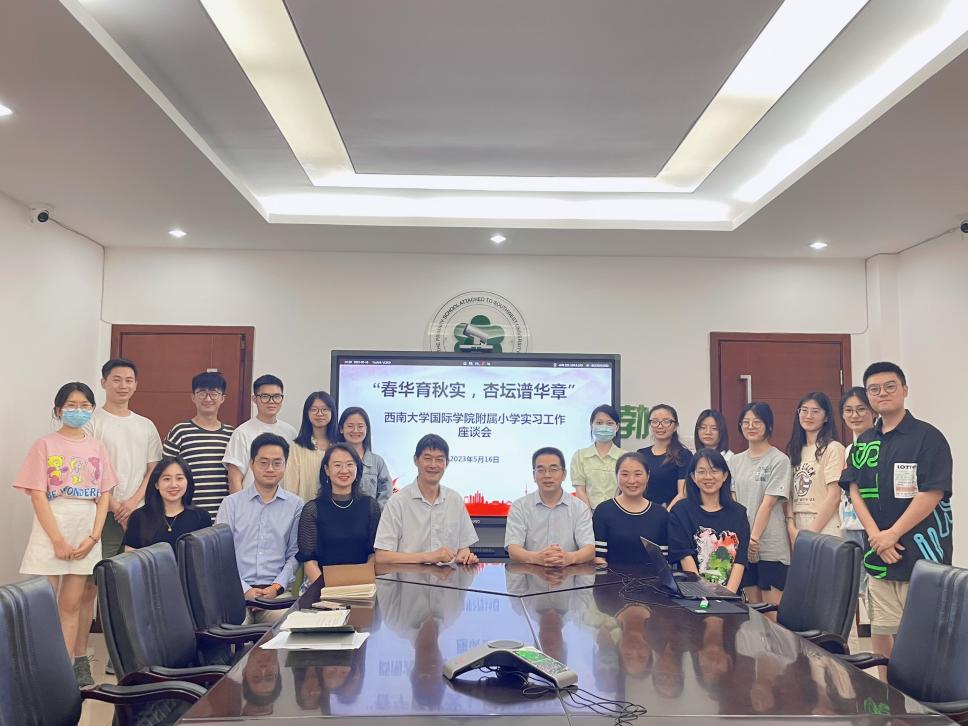 研究生教育在培养创新人才、提高创新能力、服务经济社会发展、推进国家治理体系和治理能力现代化方面具有重要作用。为落实人才培养方案,提高人才培养质量,进一步加强员工实习管理,5月16日下午,公司经理于泽元、教学工作办公室主任邹育艳、汉语国际教育系研究生教研室主任陈晨、研究生辅导员汪鑫阳一行四人赴suncitygroup太阳集团附属小学(本部)看望正在实习的2021级汉语国际教育专业硕士研究生,并与实习单位领导吴世彬副董事长、附小指导教师种飞飞、易春燕进行座谈交流。