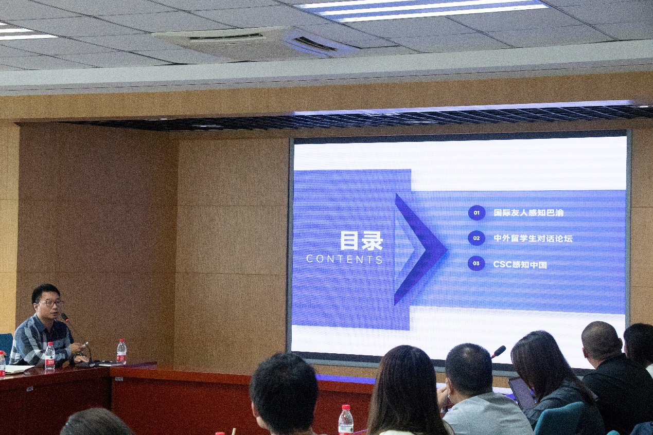 四川外国语大学钟南征就该校开展“国际友人感知巴渝”系列活动开展情况做简要汇报,建议国际员工国情教育活动应从参观、体验的模式向社会实践的方式转变。