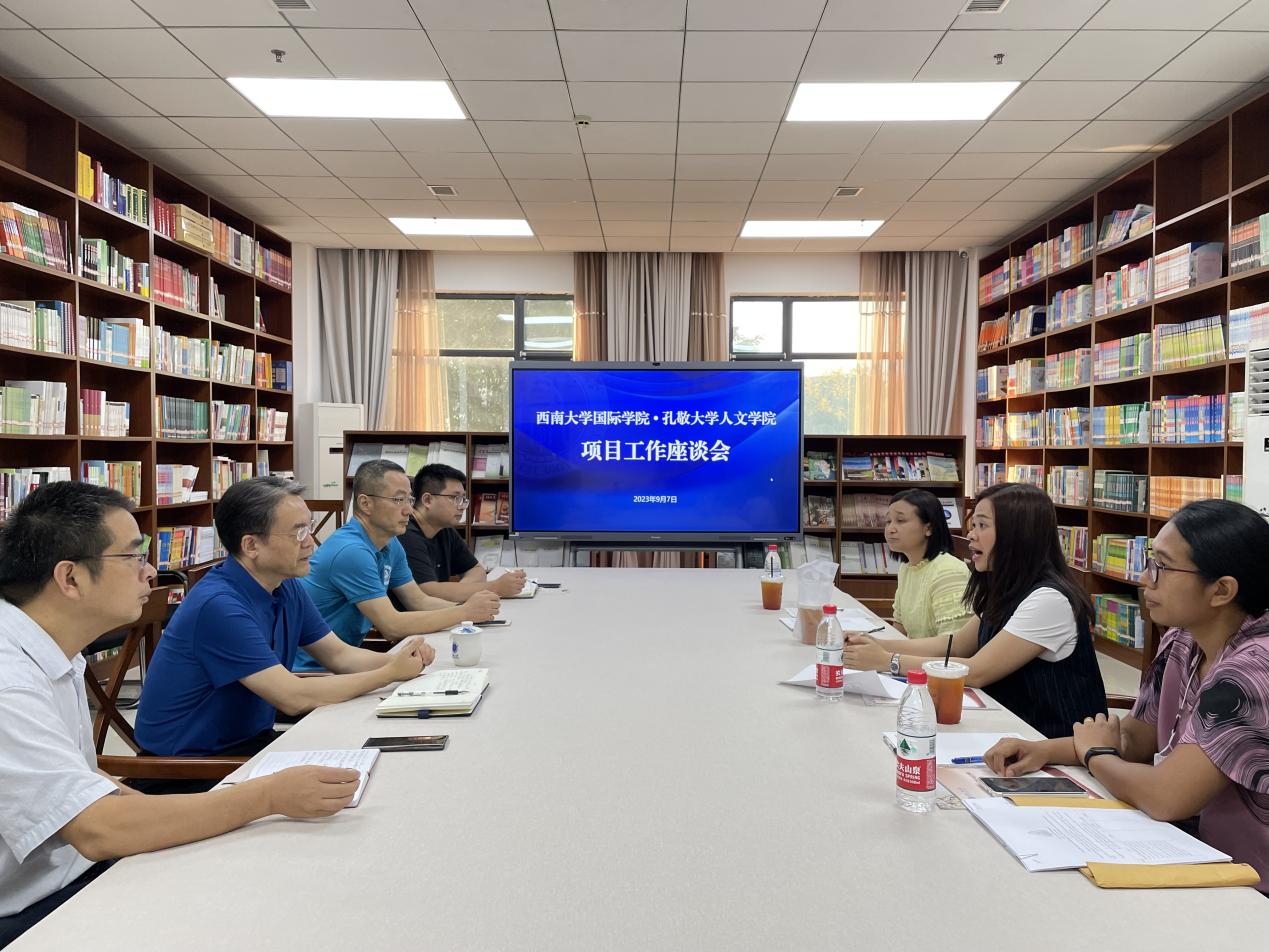 于泽元经理介绍公司近况和未来发展规划,详细了解项目进展和员工到校情况,对如何扩大和稳定项目生源提出宝贵意见,并对人文公司的海外招生项目表示支持。强调,联合培养项目既是两校17年友谊最好的成果和见证,更是双方学术交流与合作的黄金纽带,期待扩大合作。