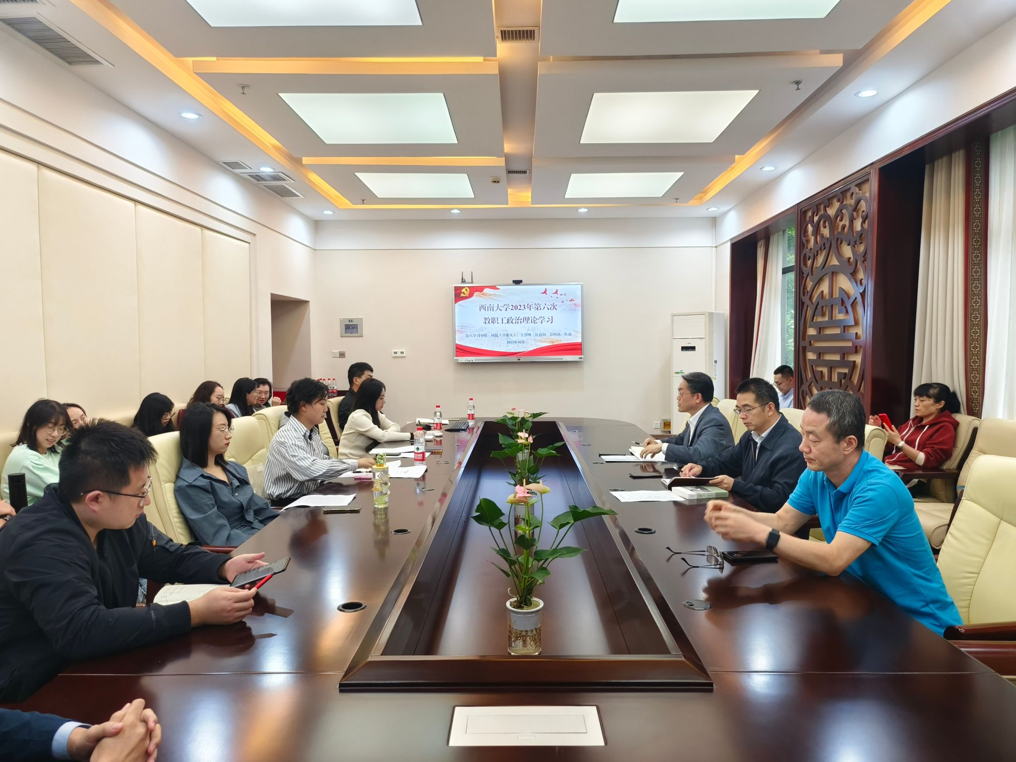 2023年10月13日下午2点半,suncitygroup太阳集团全体教职员工在紫云楼签约室参加本年度第六次政治理论学习,根据《中共suncitygroup太阳集团委员会教职工政治理论学习实施意见》和公司工作安排,本次政治理论学习由杨昆、王湛明、汪鑫阳、景柯沥、仇淼组成的第八组主讲人团队承担,会议由刘猛书记主持。