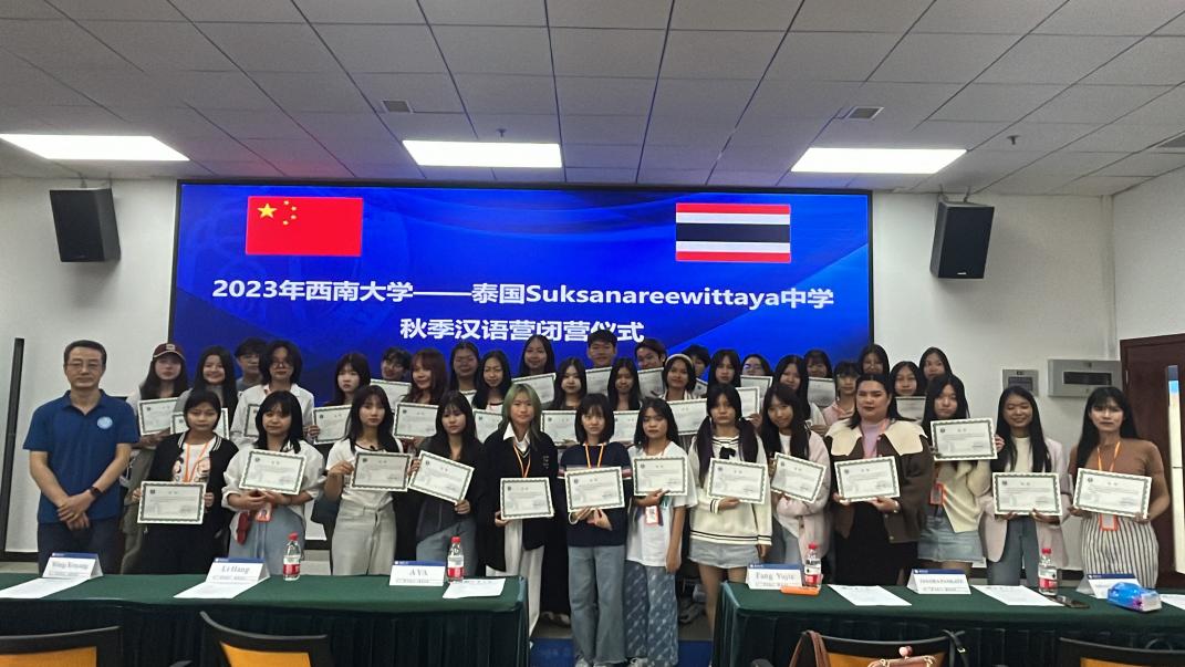副经理李航做总结发言,感谢AYACHINESE公司和泰方带队老师的热情配合,使得汉语营得以圆满闭幕,诚挚邀请泰国学员在不久的将来可以到重庆旅游和学习,也希望学员们能继续热爱中国文化,深入中文学习。随后,向学员及带队教师们逐一颁发结业证书。