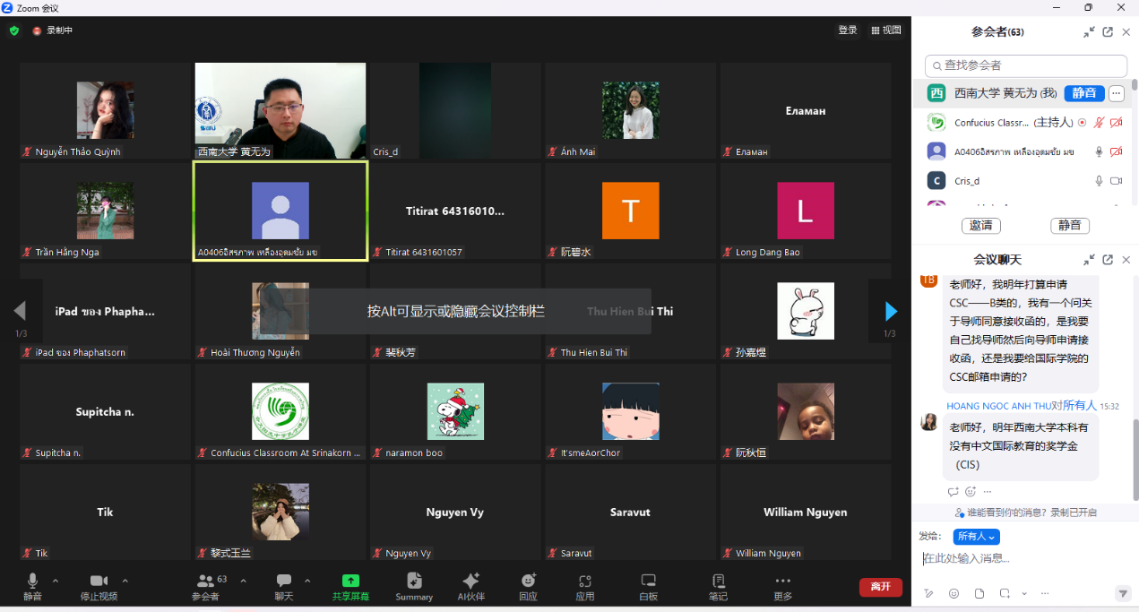 12月29日下午,公司2024年国际员工招生宣讲会在线举行,近70名来自泰国、越南、哈萨克斯坦等国的员工参加宣讲会。宣讲会由泰国国光中学孔子课堂提供技术支持。