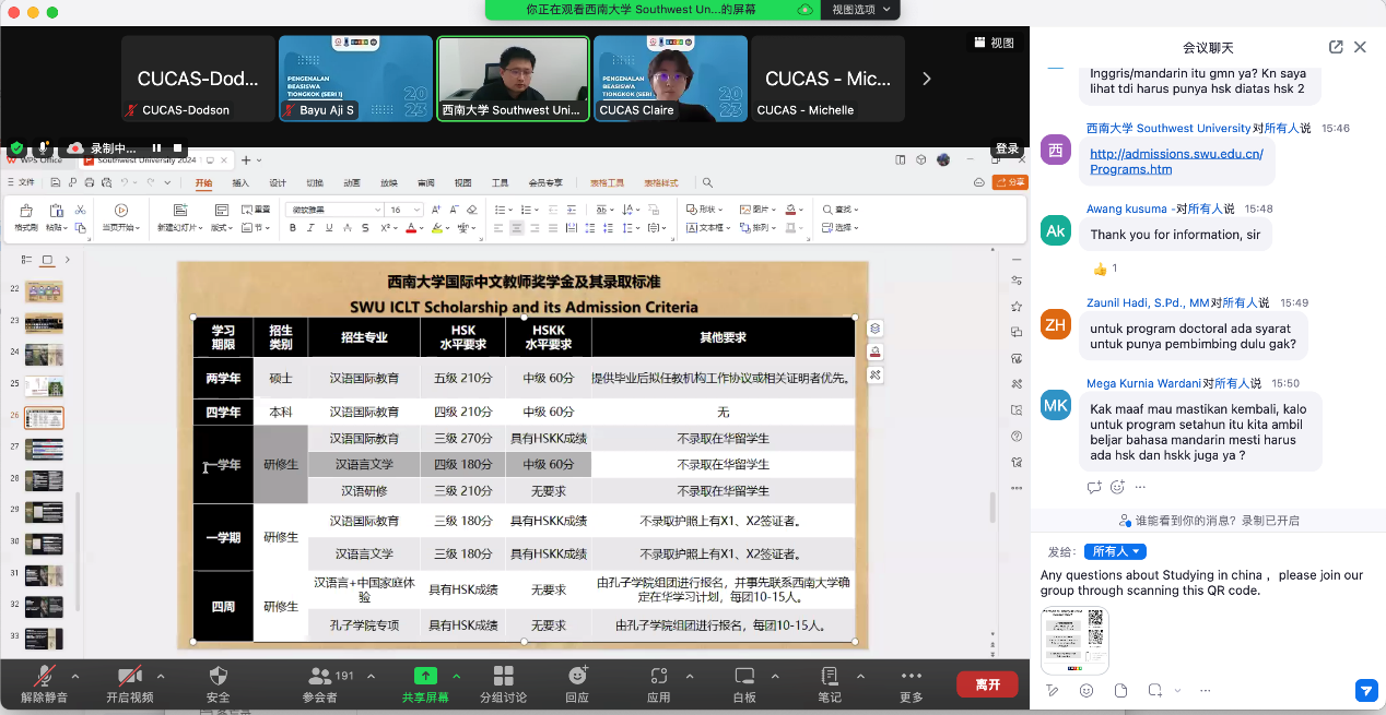 宣讲结束后,黄无为耐心地解答国际员工的提问并建立2024年招生答疑微信群,确保与员工的实时联系。