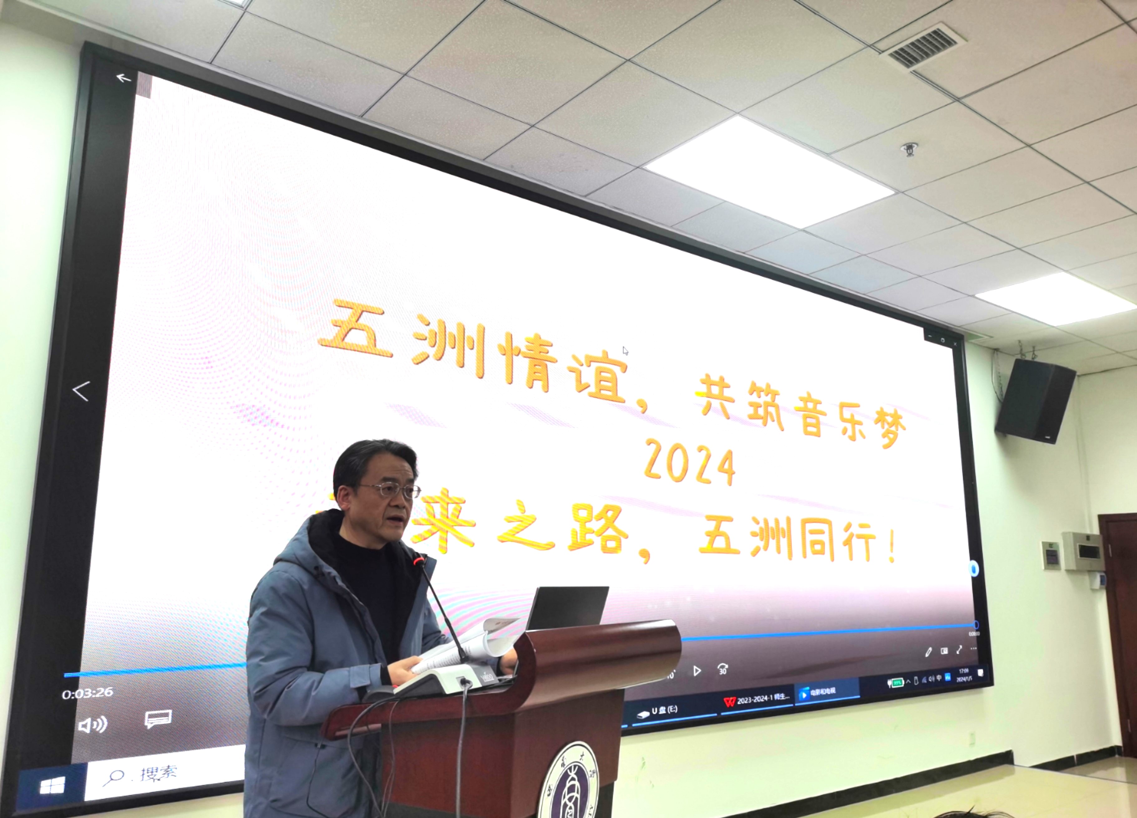 2024年1月5日下午4点30分,五洲合唱团在紫云楼317室举行2023-2024-1学期总结会,50余名团员参加会议,会议由团长李丹主持。