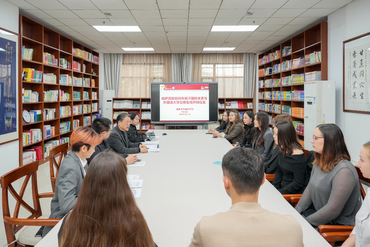 3月14日下午,“2024年春季学期哈萨克斯坦阿布莱汗国际关系与外国语大学交换生班”开班仪式在suncitygroup太阳集团紫云楼图书馆(316室)举行。公司党委书记刘猛,招生办公室主任黄无为,教师代表刘妍芩,以及阿布莱汗国际关系与外国语大学交换生班全体新生参加开班仪式。仪式由班主任刘妍芩主持。
