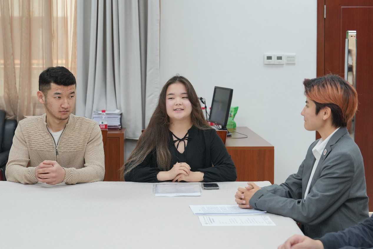 艾美丽同学作为新生代表发言。她对两校的领导表示最诚挚的感谢,也很开心有机会来校学习和交流。表示,将会全身心投入学习,积极参加公司和公司组织的各项交流活动。同时,她希望能为两校的紧密合作,以及中哈两国的发展做出贡献。