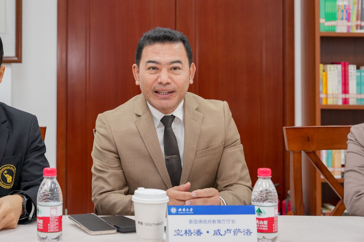 威卢萨洛厅长对公司来华留学工作给予高度赞赏,表示,在参观公司和公司之后,对公司办学质量、校园环境和学习氛围,以及公司的职工规模、办学和服务理念、特别是对泰国员工的悉心培养和照顾留下极为深刻的印象。他重点推介了今年6月计划举行的佛统府“留学中国高校教育展”,期待通过佛统府教育厅的平台协调宣传推广“留学西大”品牌。