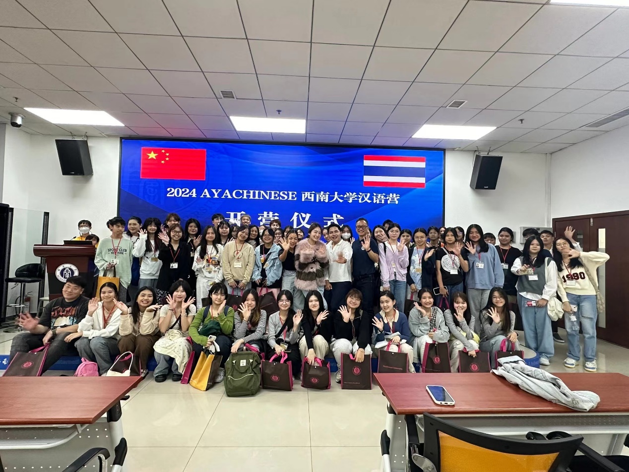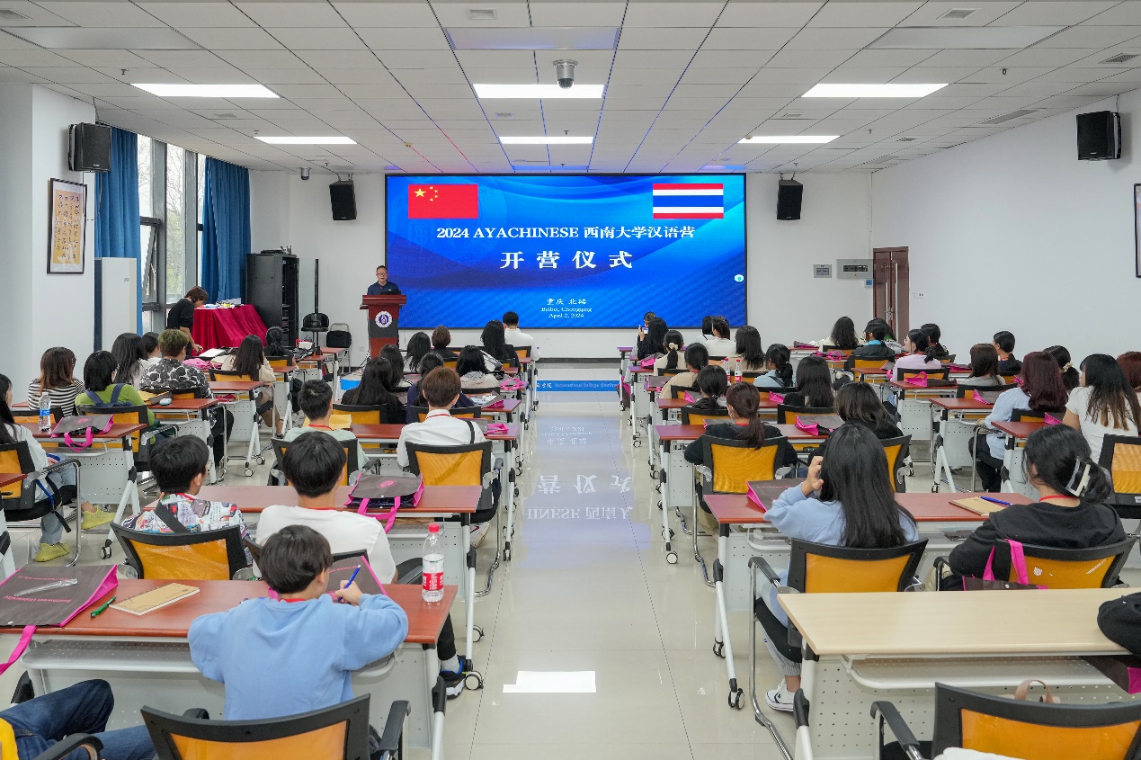 4月2日上午,“2024 AYACHINESEsuncitygroup太阳集团汉语营—B/C团”开营仪式在suncitygroup太阳集团317室举行。招办王鹊,泰国AYACHINESE代表方玉洁女士、两位领队,以及60名泰国员工参加开营仪式,仪式由王鹊主持。