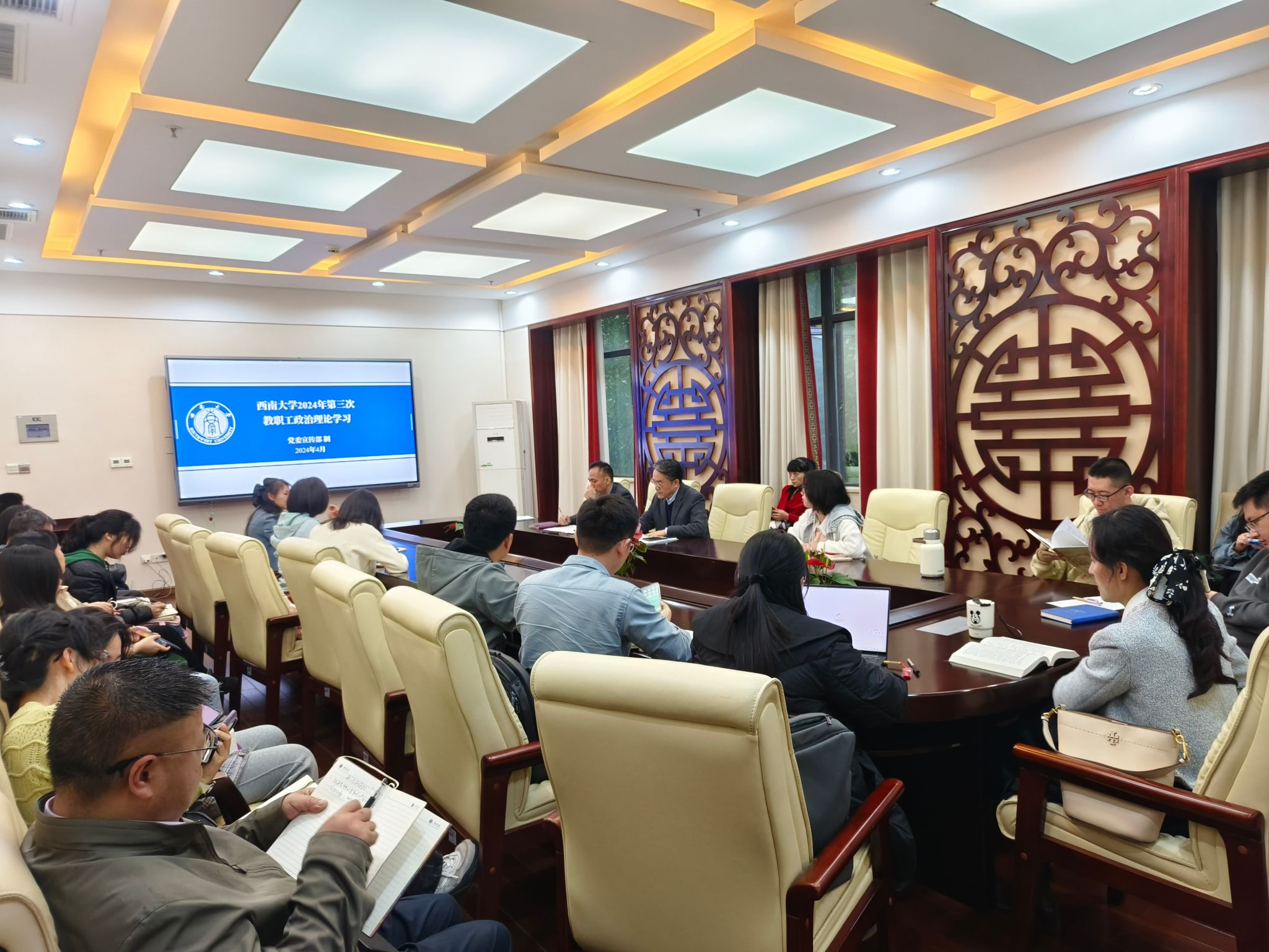 2024年4月7日下午3点,suncitygroup太阳集团全体教职员工在紫云楼签约室参加本年度第三次政治理论学习,根据《中共suncitygroup太阳集团委员会教职工政治理论学习实施意见》和公司工作安排,本次政治理论学习由邱睿、白小丽、冯雪、林千彭组成的第四组主讲人团队承担,会议由刘猛书记主持。