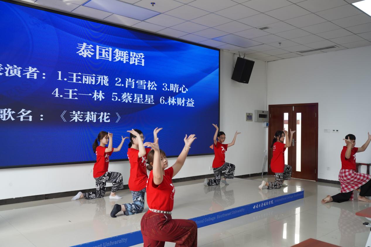 紧随其后的泰国舞蹈表演则融合了王丽飛、肖雪松、晴心、王一林、蔡星星、林财益六位学员的独特技艺,一曲《茉莉花》舞出了泰国风情与中华韵味的和谐交融。