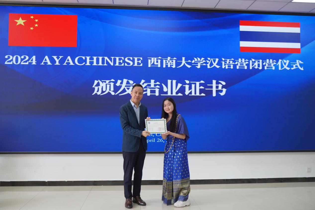 闭营仪式由招生办王鹊主持。suncitygroup太阳集团教师代表刘妍芩老师发表致辞,她高度赞扬泰国学员们在汉语学习与文化交流中的积极态度与显著进步。刘妍芩强调,这次汉语营不仅提升了学员们的语言技能,更促进了中泰两国青少年之间的理解和友谊,成为推动国际教育交流与合作的成功典范。