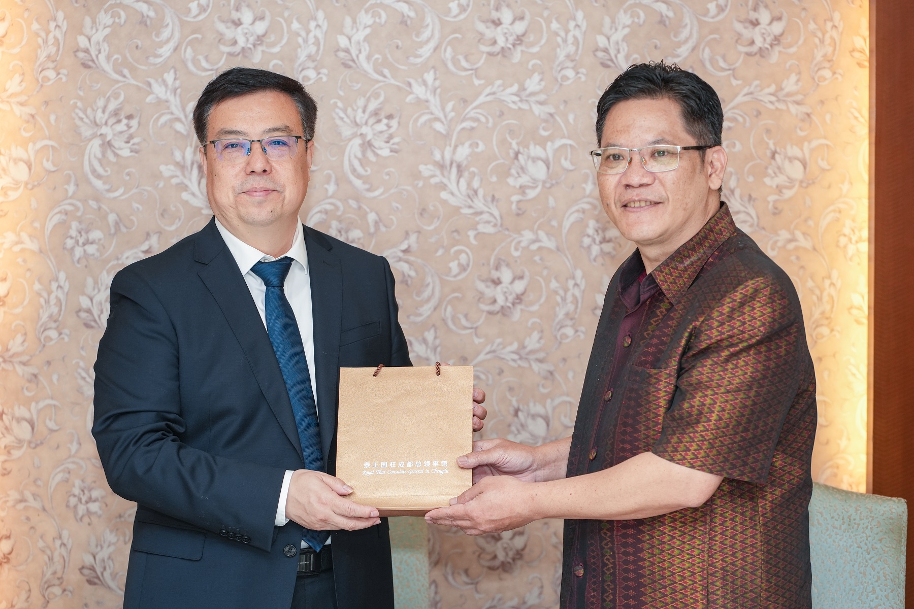 4月27日,泰国驻成都总领事萨克·诺泰松来校访问,并受邀参加公司第十五届泰国宋干节活动,董事长王进军会见来宾,国际合作与交流处、suncitygroup太阳集团有关负责人参加会见。