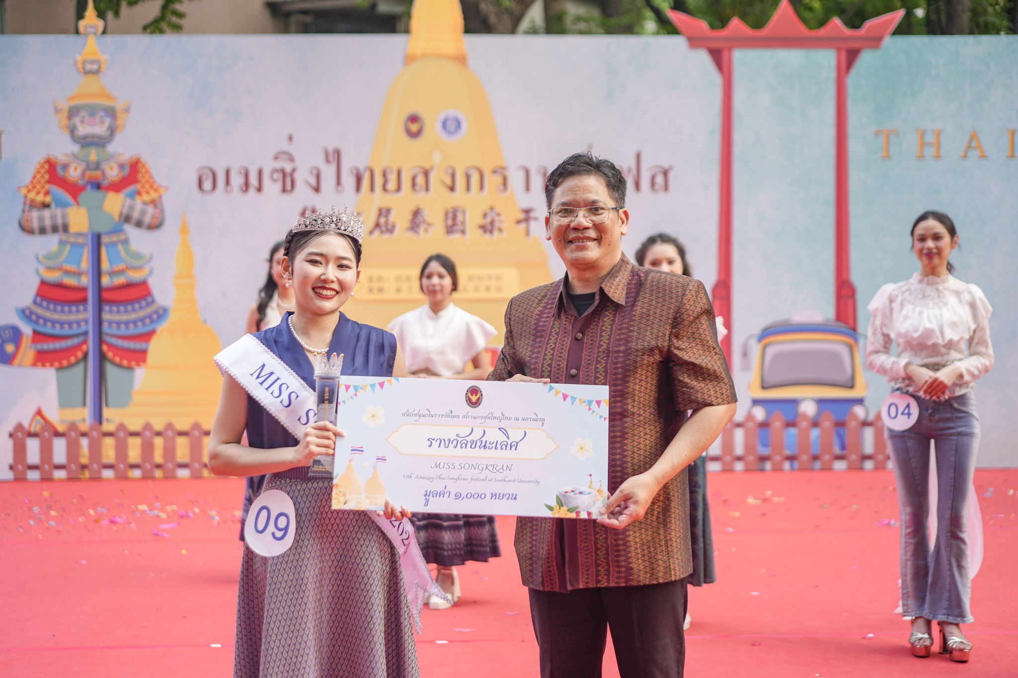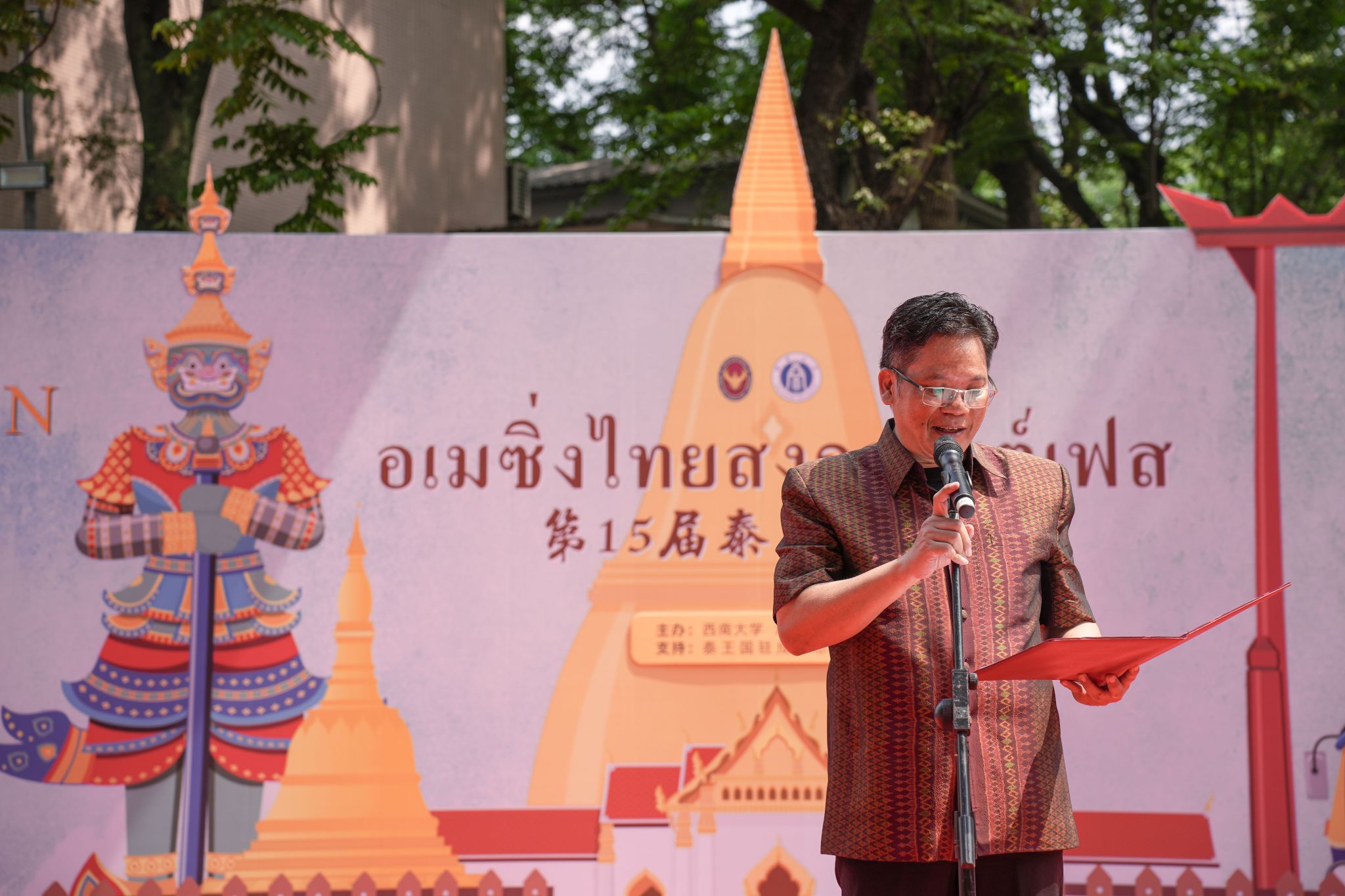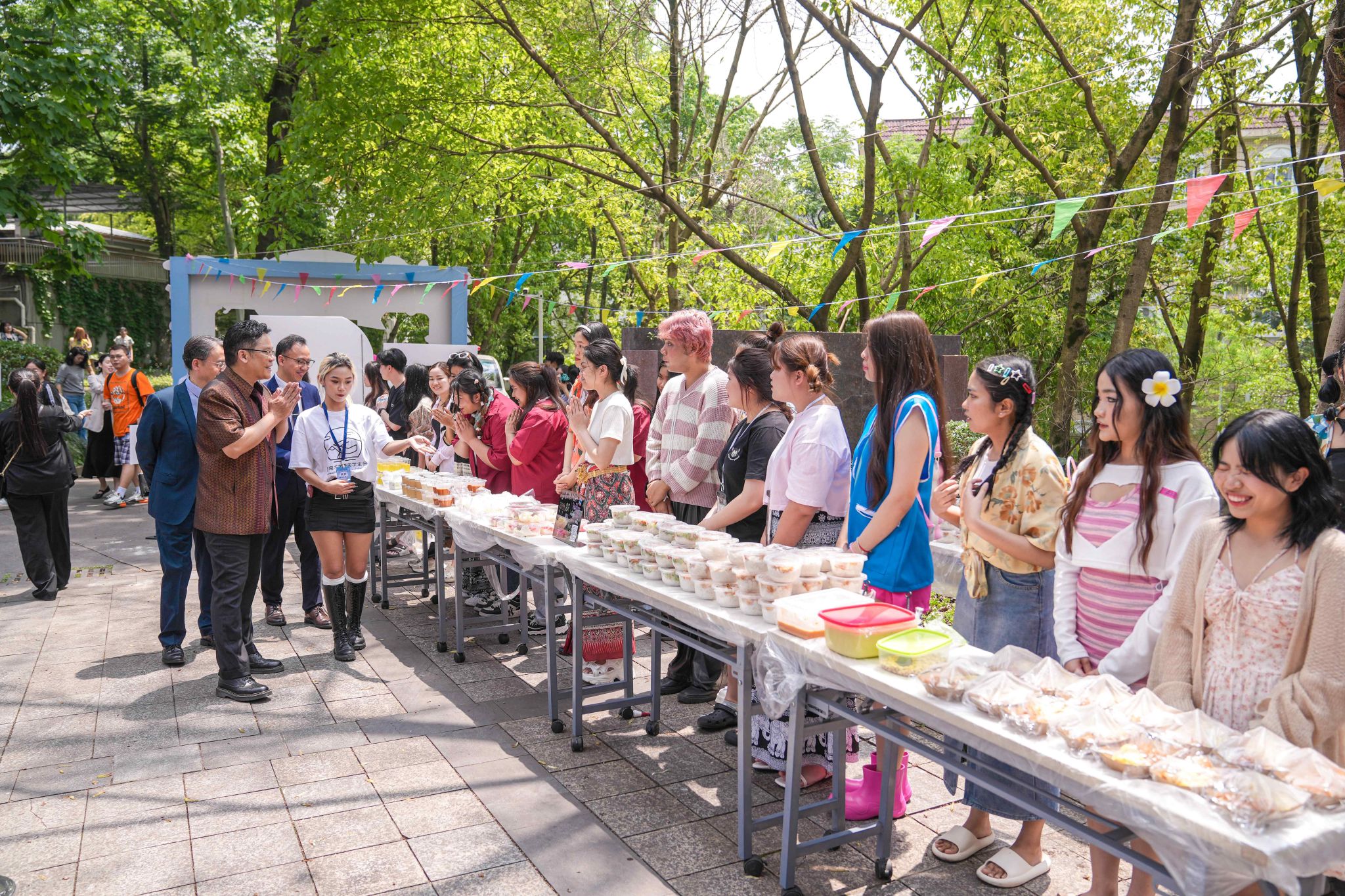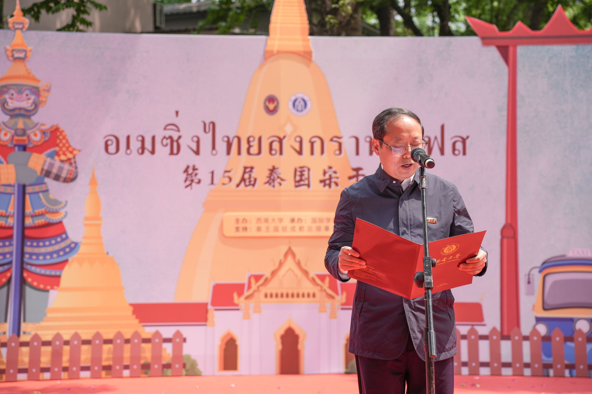 为进一步助力中泰两国间深层次文化交流互动,推动中外文化交流融通, 4月27日下午13时,suncitygroup太阳集团第15届泰国宋干节活动于公司紫云文化广场火热开展。活动由suncitygroup太阳集团主办,suncitygroup太阳集团承办,并得到了泰王国驻成都总领事馆的大力支持。公司周光明副董事长、泰国驻成都总领事萨克·诺泰松先生一行莅临现场,市外办、市出入境、区文旅委以及校宣传部、学工部、团委、国际处、suncitygroup太阳集团等职能部门领导出席活动,来自川渝两地高校的六百余名中外员工到场参加。中国汉硕生师晓萱、国际员工江丰(卢旺达)和张正梅(泰国)担任主持。