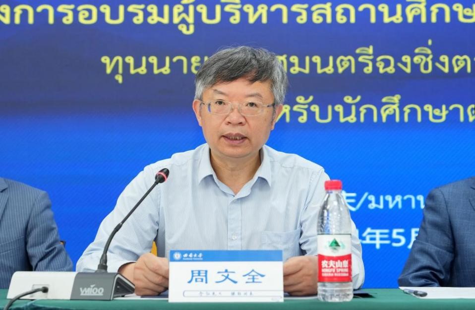 教育学部周文全书记致辞,代表教育学部欢迎泰国友人的到来。他强调,这是疫情后第一次线下项目,从2017年到2023年,已成功举办了6届泰国教育官员和董事长培训,有效促进了中泰教育交流与发展。他对中泰两国政府、教育部及重庆市教委的支持表达由衷感谢,同时还对suncitygroup太阳集团和教育学部参与项目筹备的师生们的辛勤付出表示高度肯定,祝愿项目圆满成功。