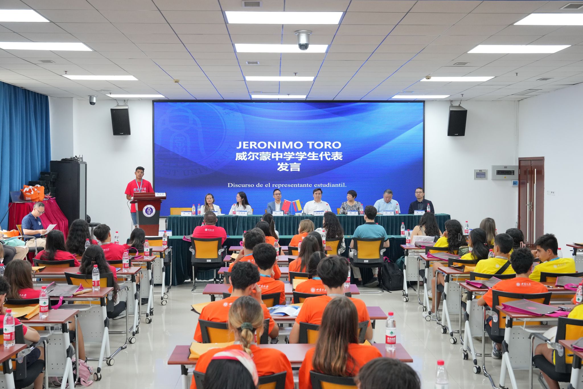 威尔蒙中学员工代表JERONIMO TORO发言,表达了对学习中国文化的兴奋和感激之情,并相信这次体验将为他们带来更深层次的人生体验。