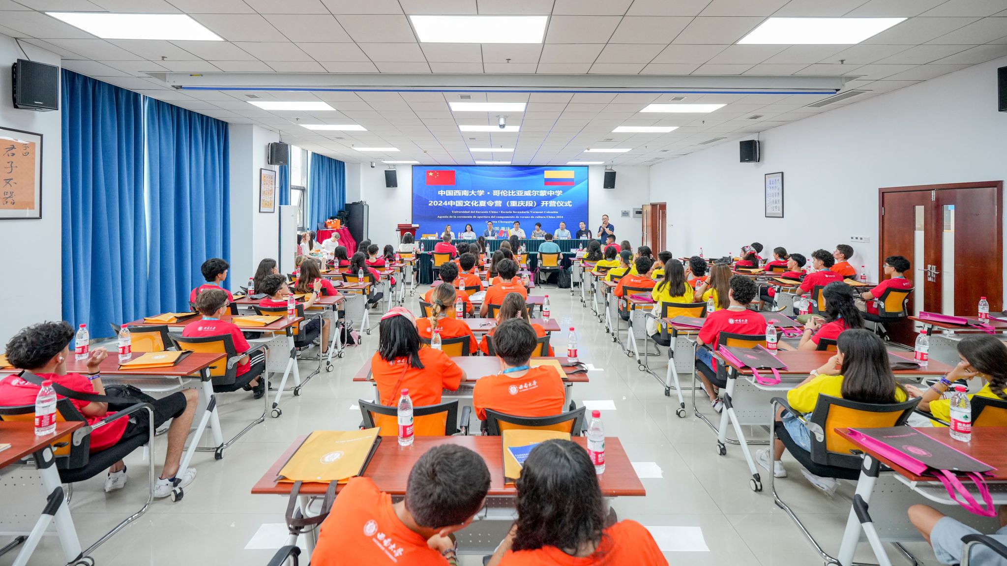 5月28日上午,“中国suncitygroup太阳集团 • 哥伦比亚威尔蒙中学2024中国文化夏令营(重庆段)”A团开营仪式在suncitygroup太阳集团紫云楼317室举行,来自哥伦比亚威尔蒙中学的84名师生欢聚公司,开启为期12天的参访学习。suncitygroup太阳集团副经理耿军,中国对外文化集团有限公司副总经理郑秀全,中国文化国际旅行社有限公司副总经理杨青、白淼、王彬,威尔蒙公司教师领队郑博君、Juliana Useche、Brando Suarez、Juliio Gualdron、Luisa Pachon、Maria Camila Orozco、Maria Fernanda Gomez及全体团员参加开营仪式,仪式由招办王鹊主持。